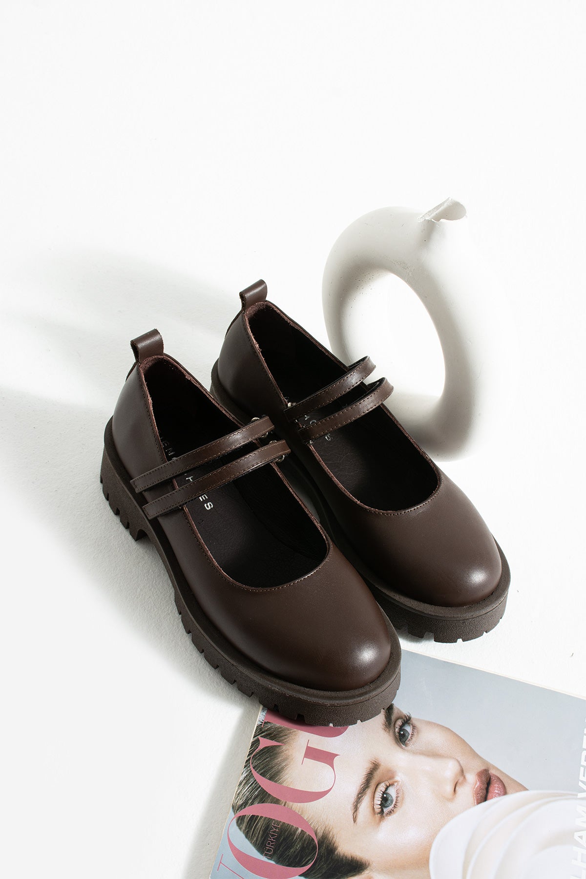Lunel Kadın Hakiki Deri Cırtlı Günlük Ayakkabı Kahve