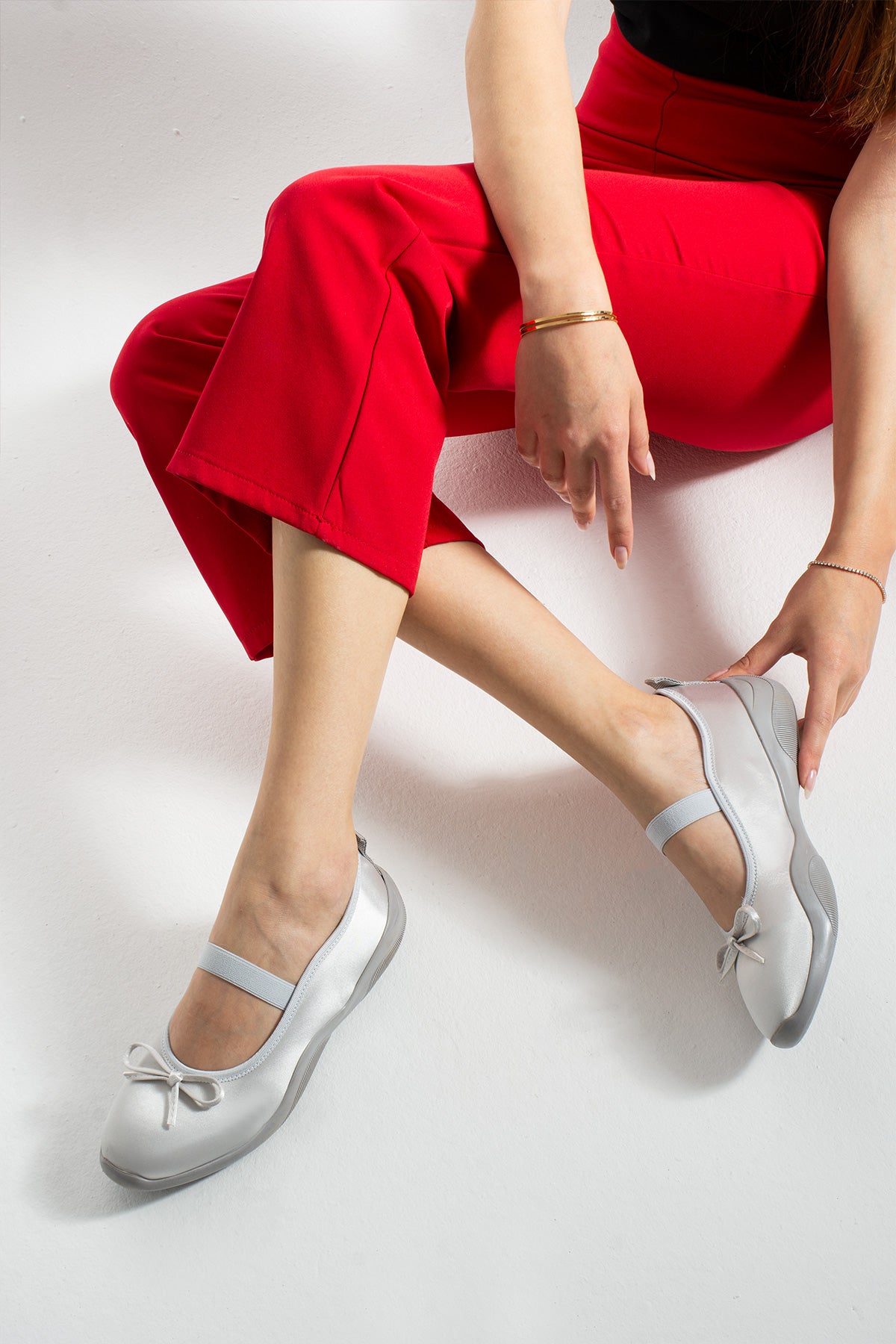 Rhea Kadın Fiyonklu Lastikli Babet Gümüş