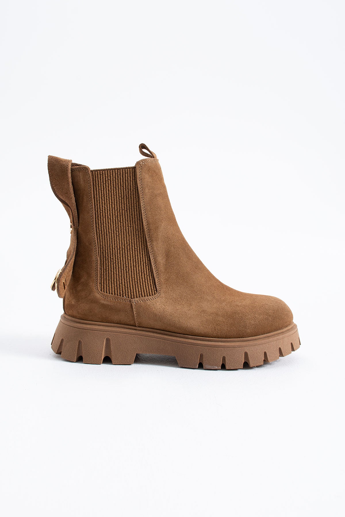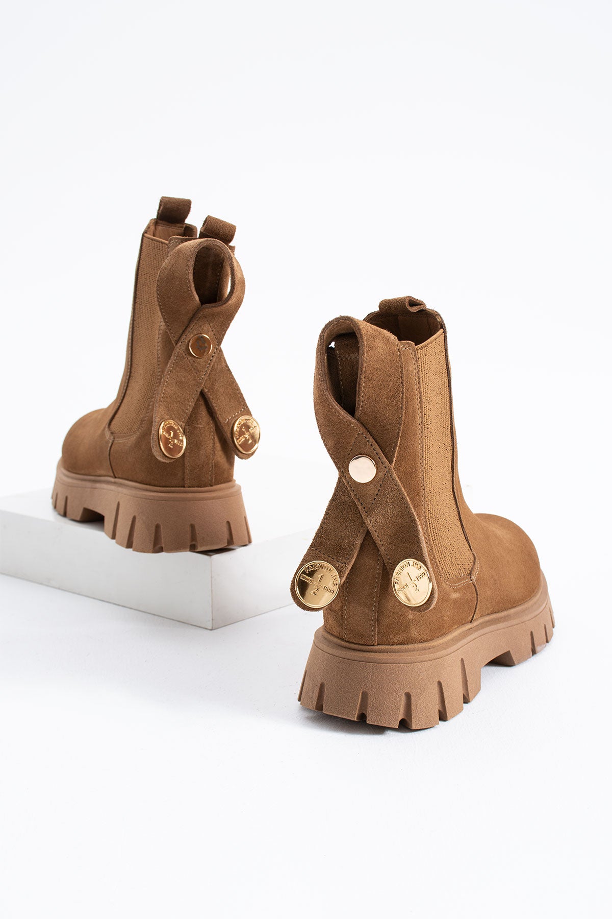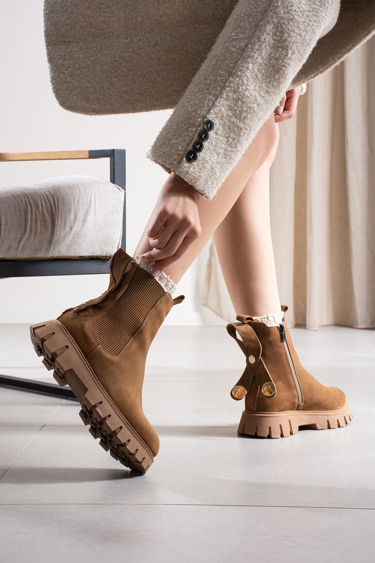 Rachel Kadın Lastikli ve Fermuarlı Hakiki Deri Bot Taba Süet