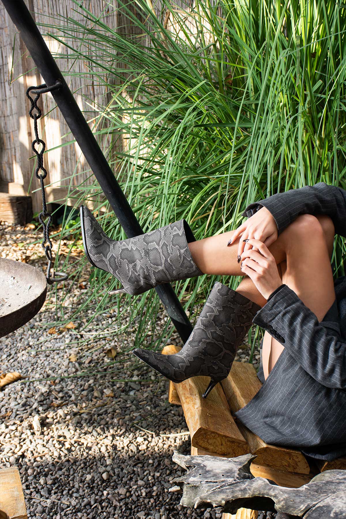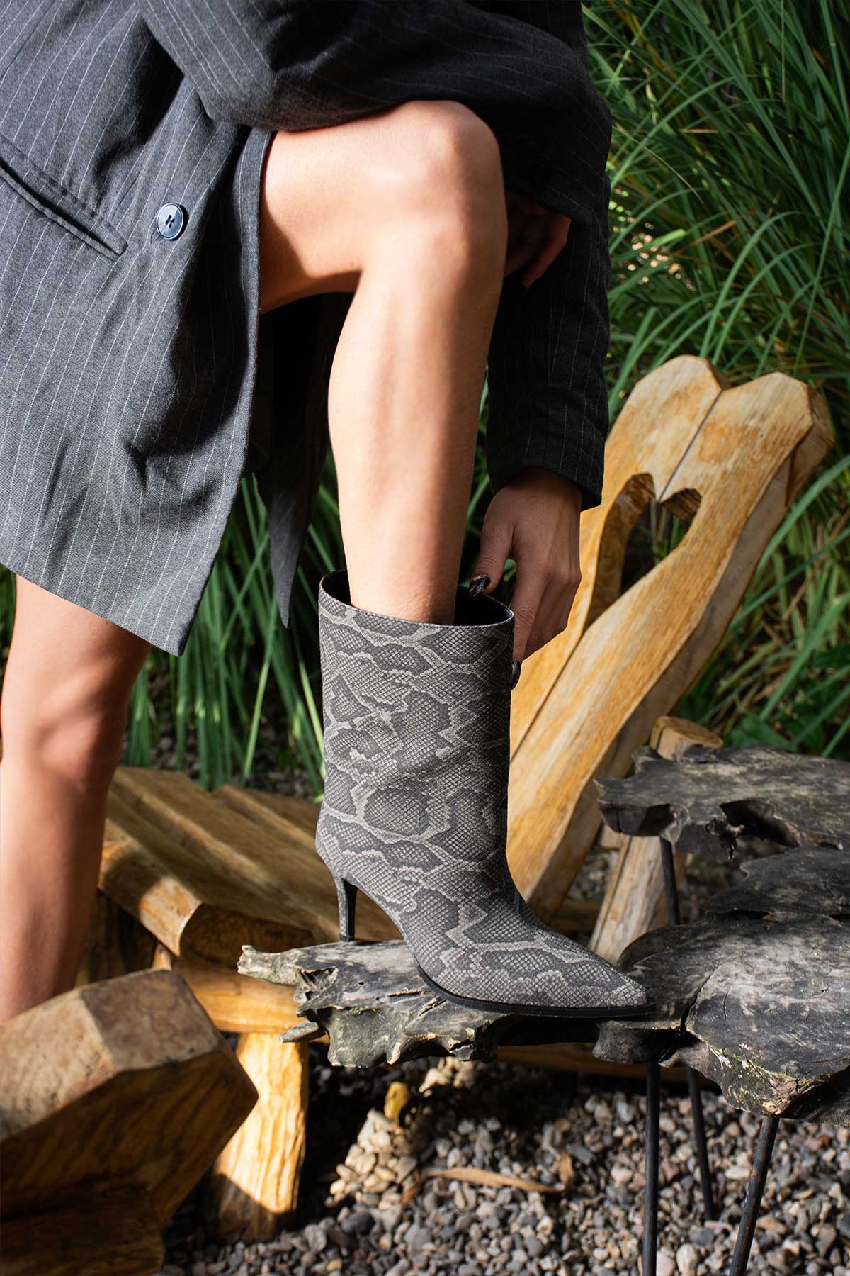 Crista Kadın Günlük Topuklu Bot Gri Yılan