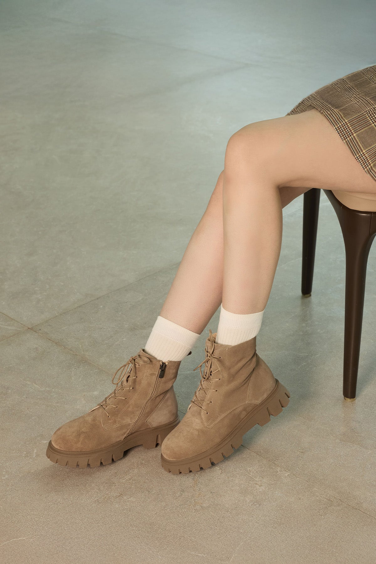 Lucia Kadın Bağcıklı Hakiki Deri Bot Bej Süet