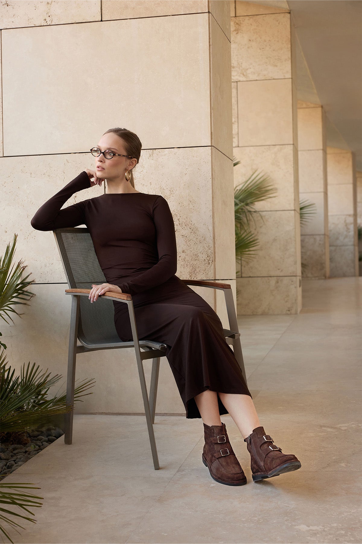 Rogue Kadın Toka Detaylı Hakiki Deri Bot Kahve Süet