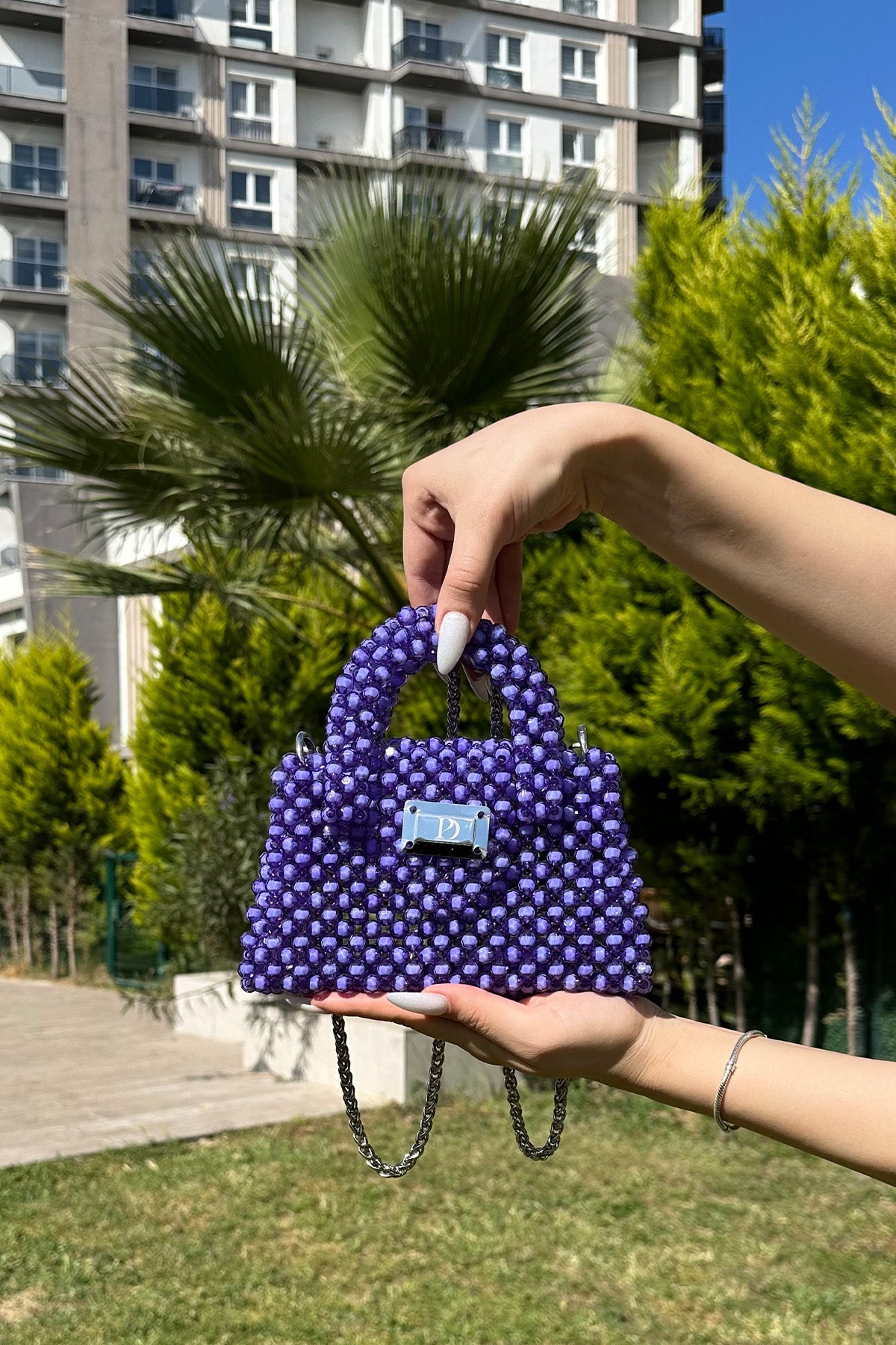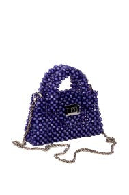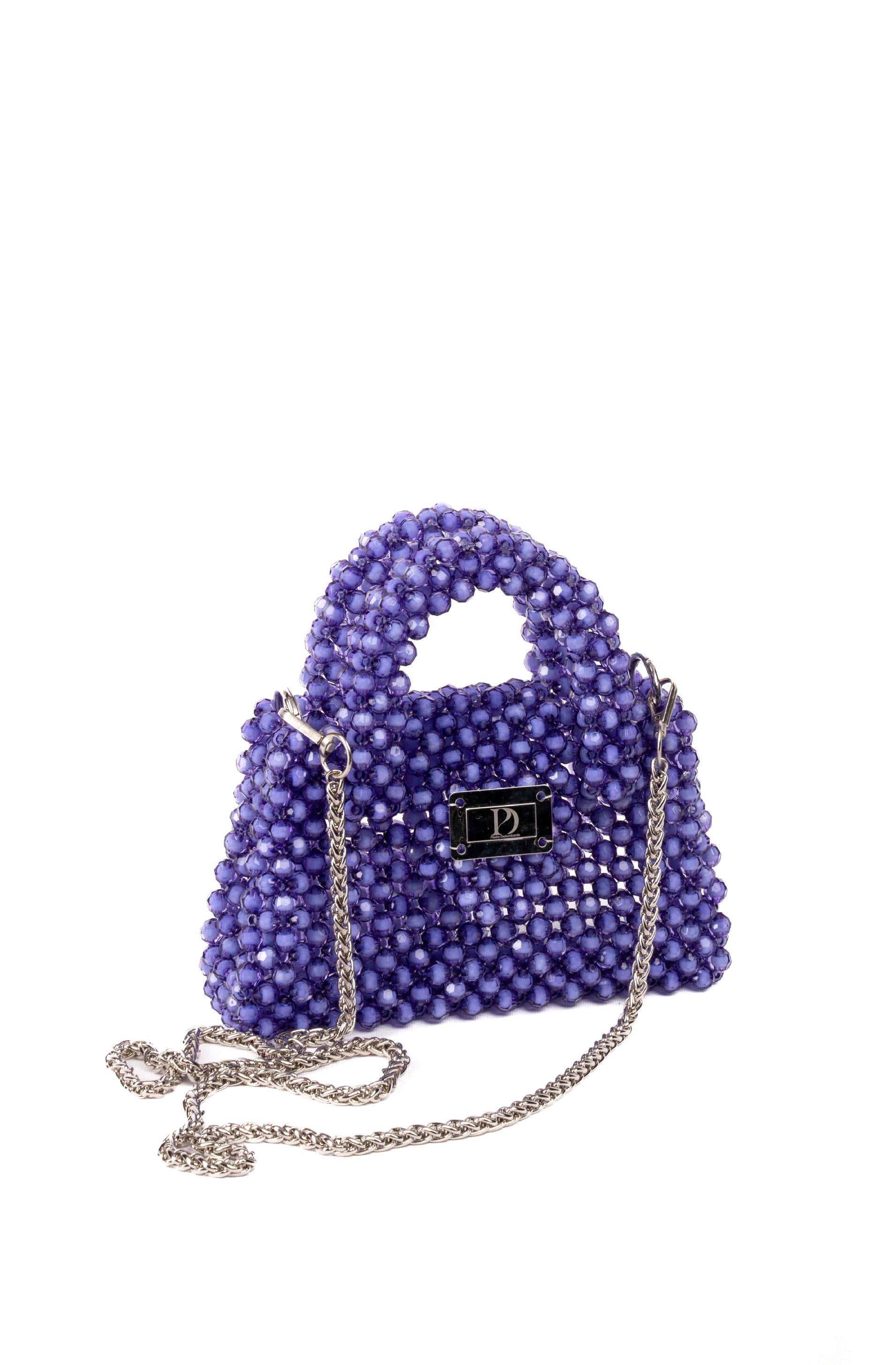 Double Handle Kadın Özel Tasarım Taşlı El Çantası Mor