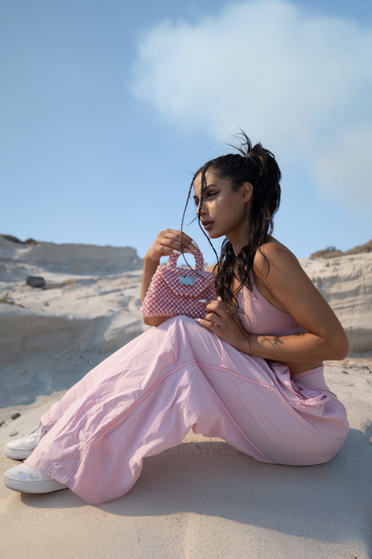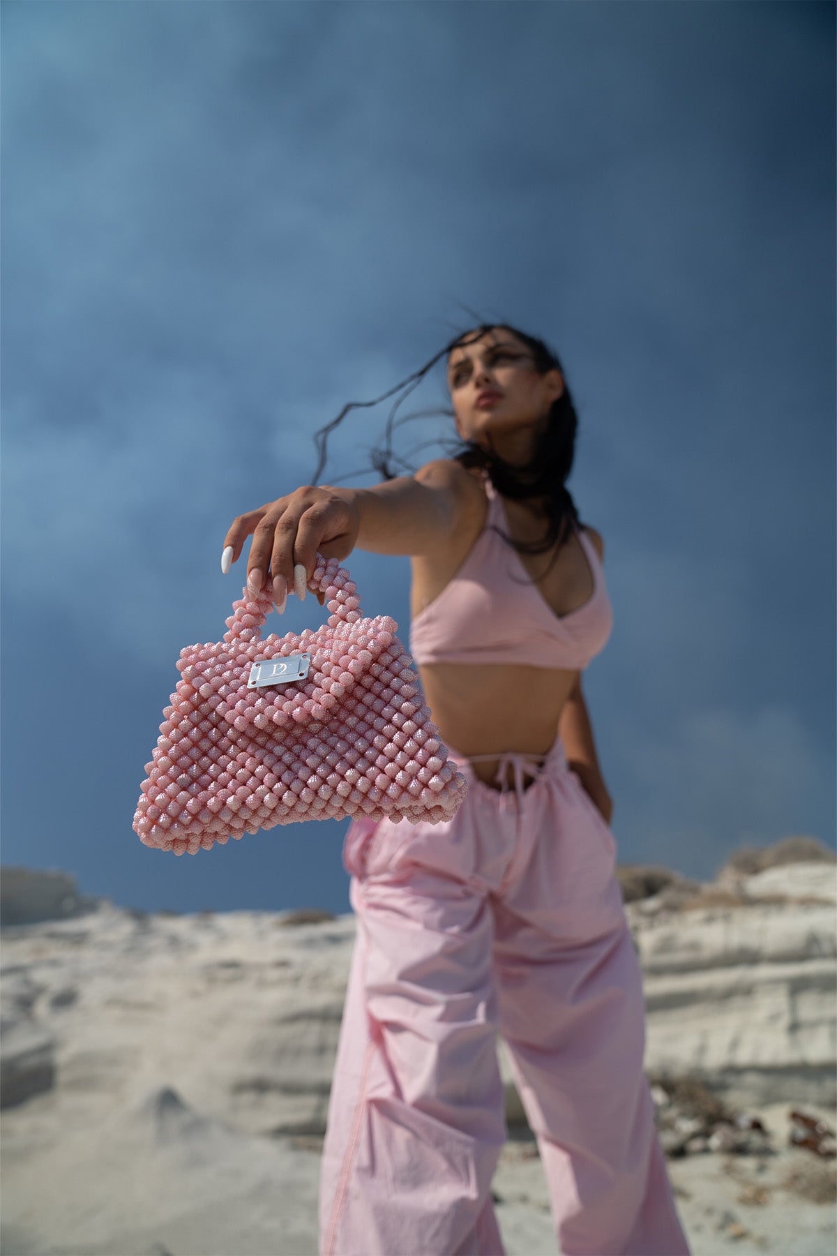 Mini Kadın Özel Tasarım Taşlı El Çantası Pembe