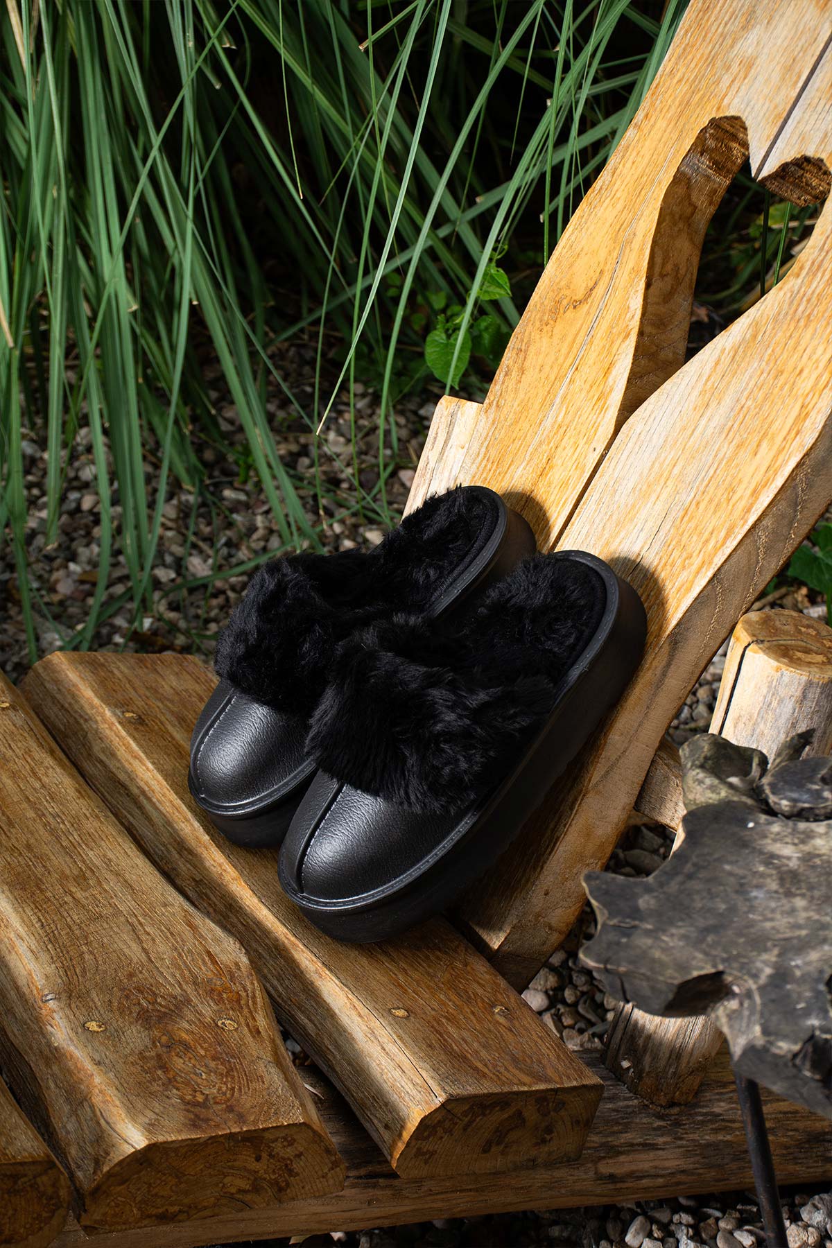 Valencia Kadın Yıkanabilir Peluş Terlik Siyah