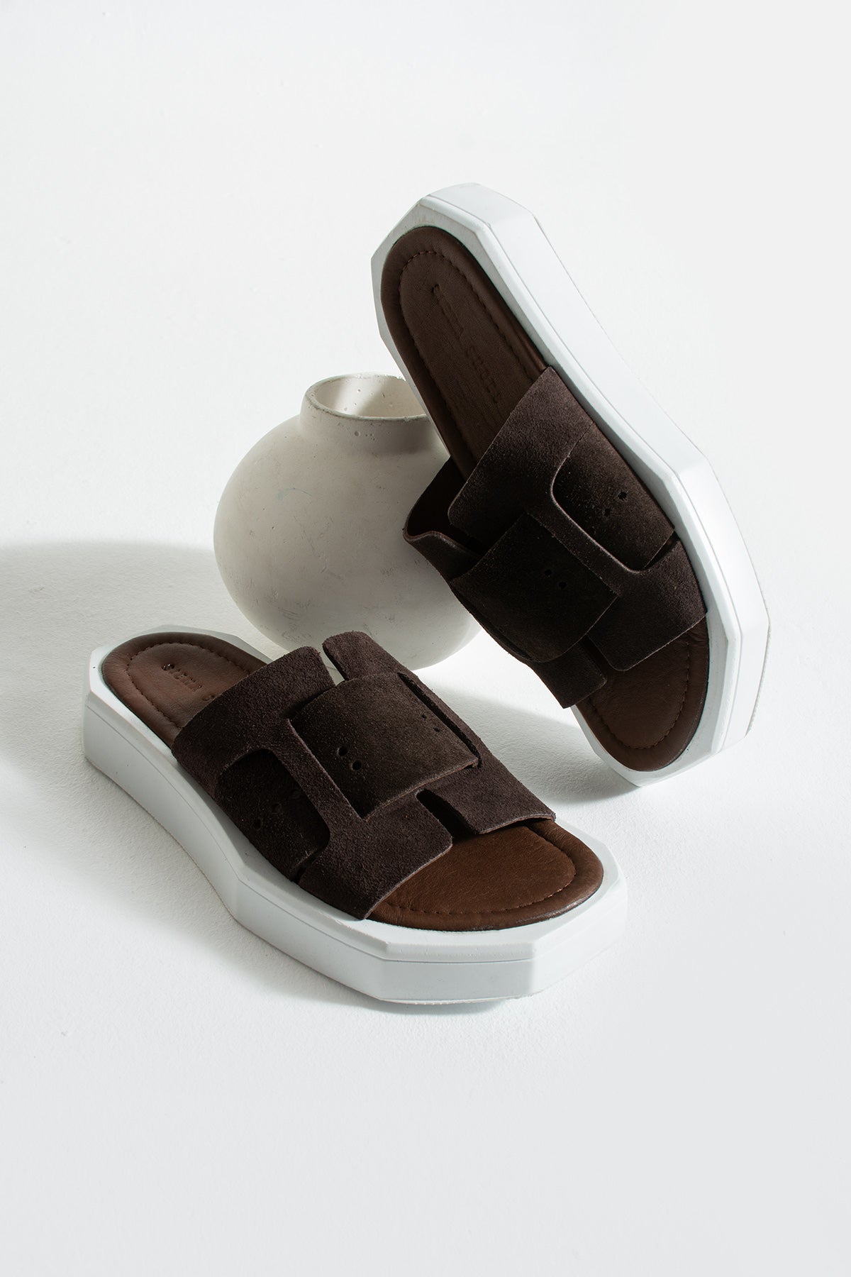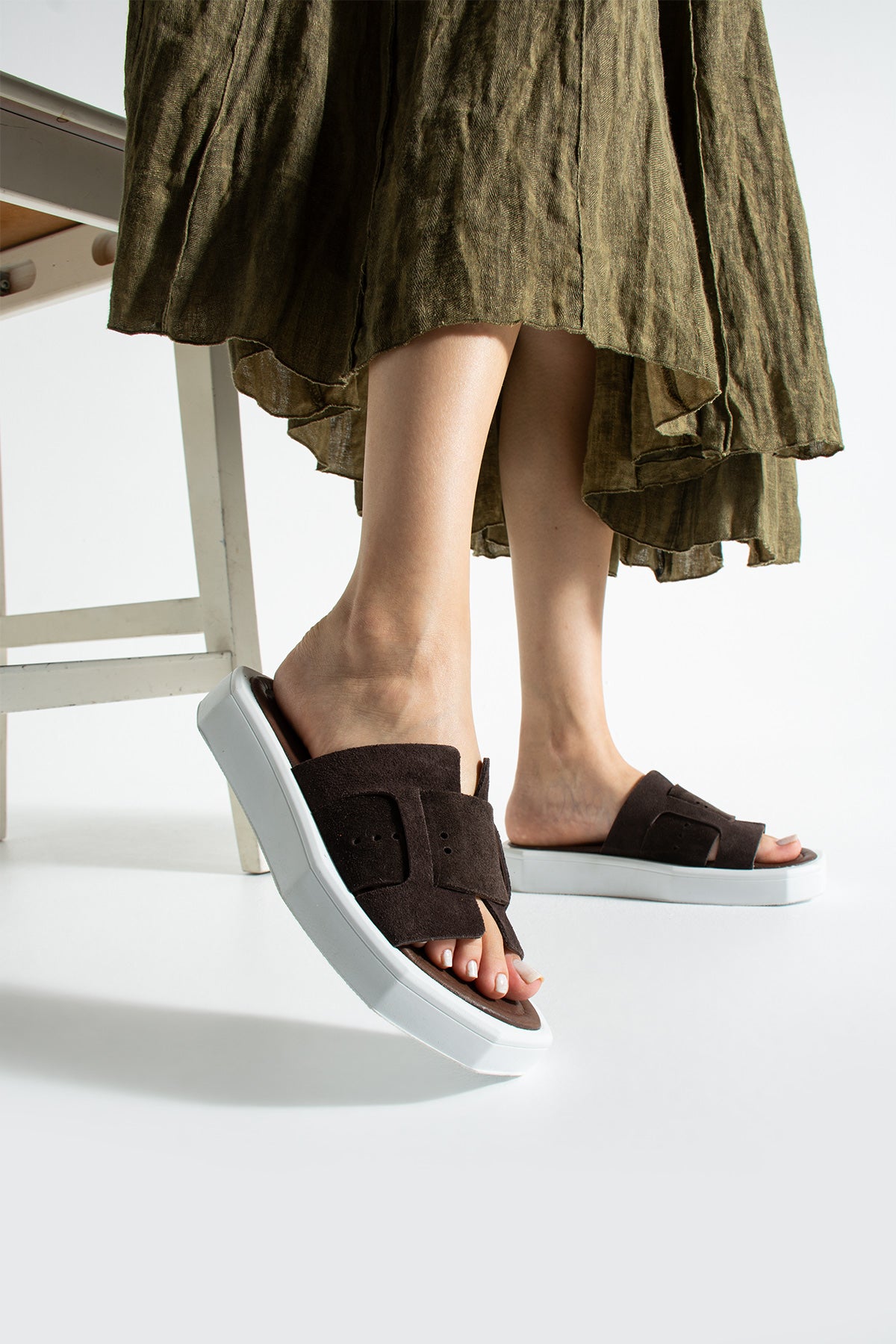 Lenoria Kadın Hakiki Deri Terlik Kahve Süet