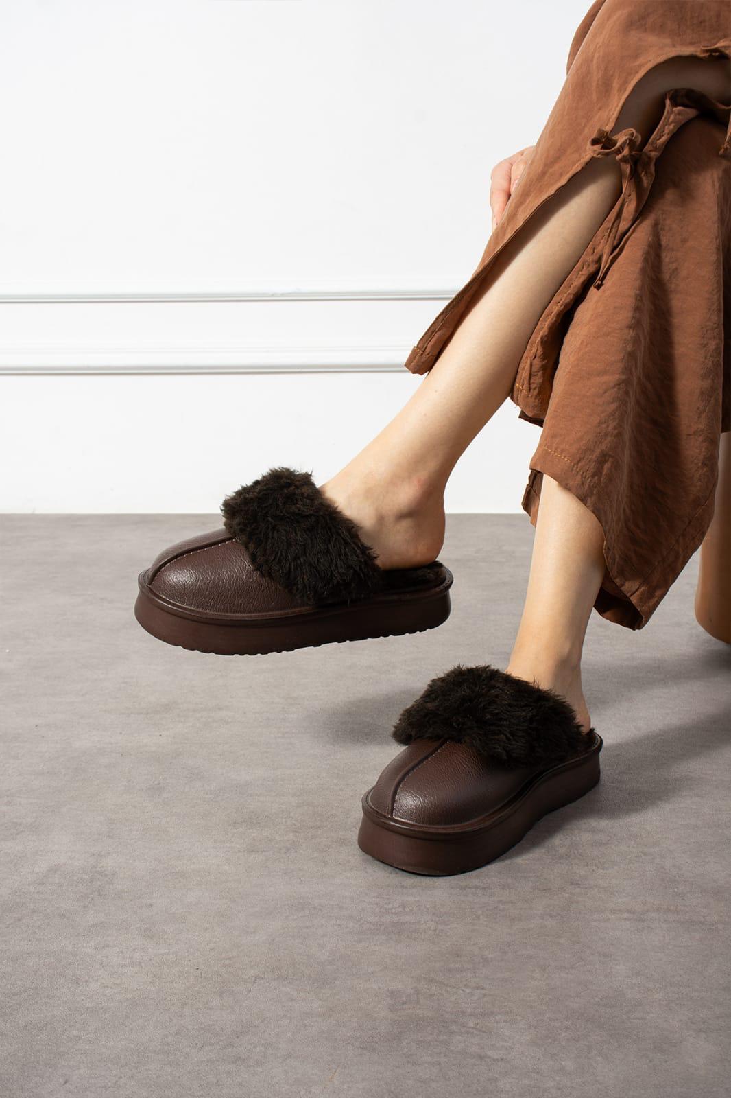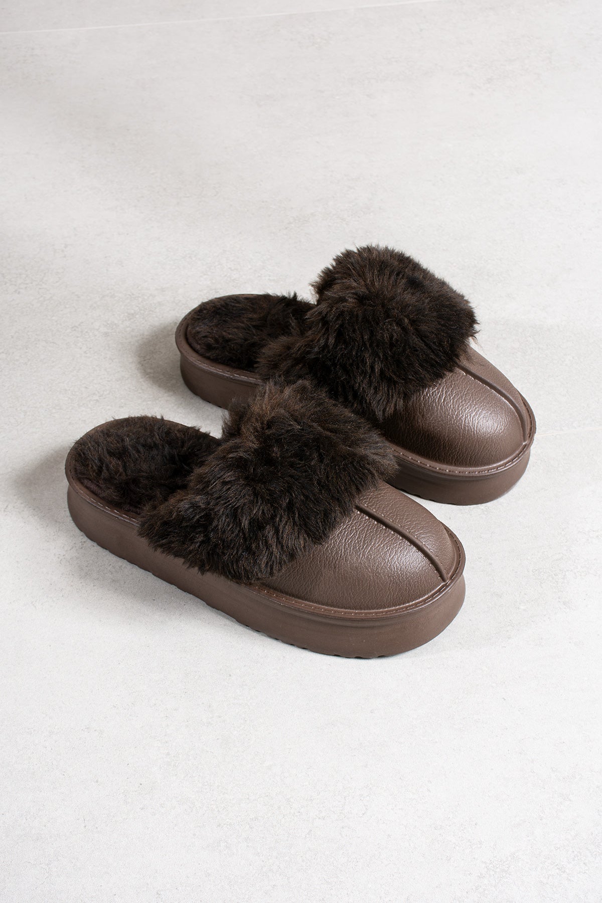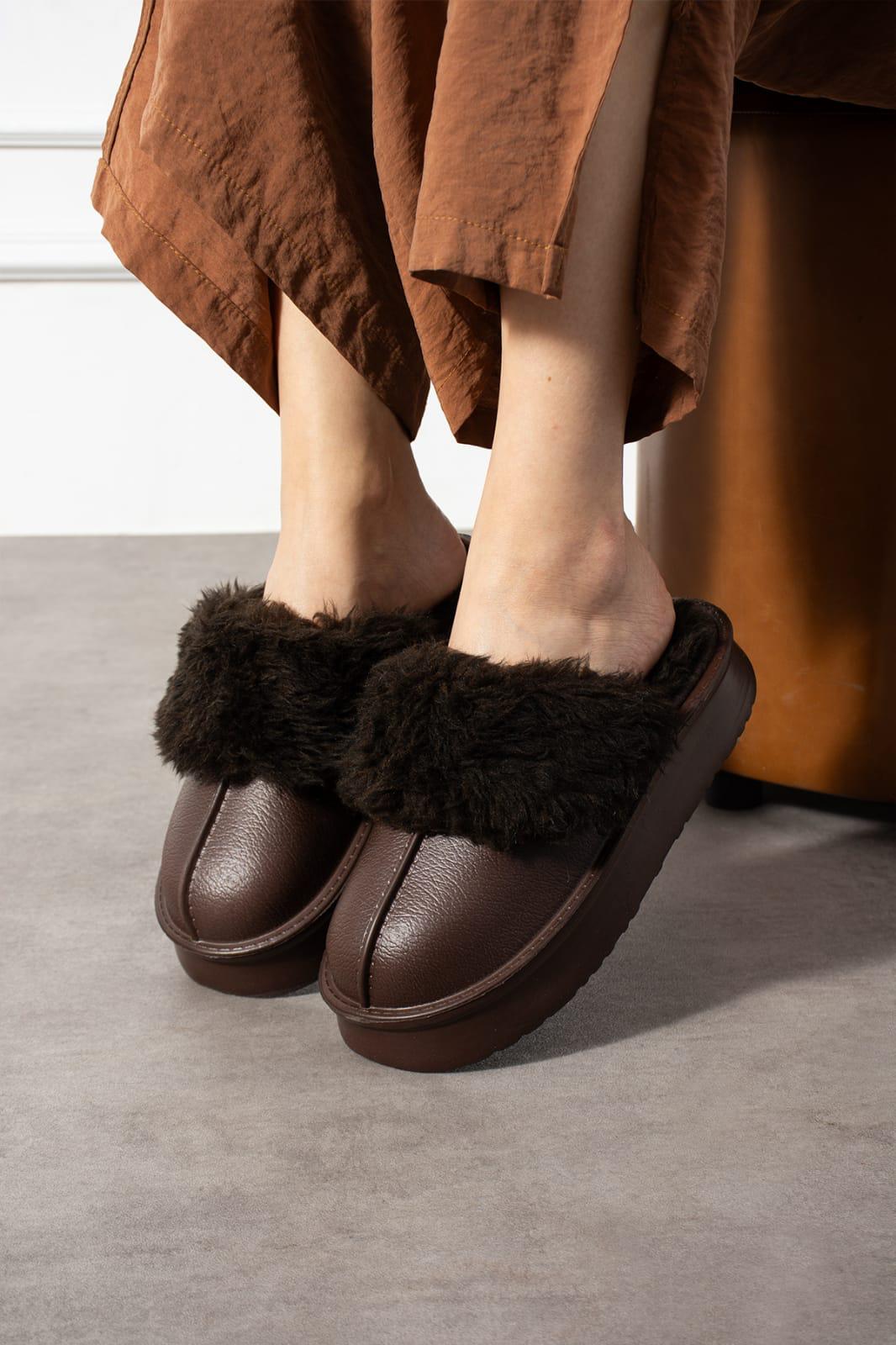 Valencia Kadın Yıkanabilir Peluş Terlik Kahve
