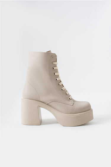 Master Kadın Bağcıklı ve Fermuarlı Topuklu Bot Bej