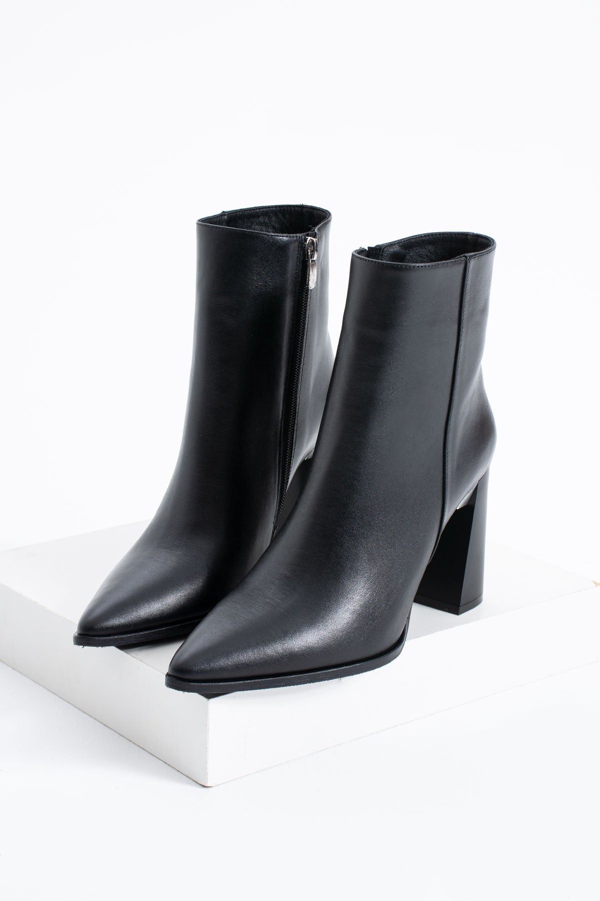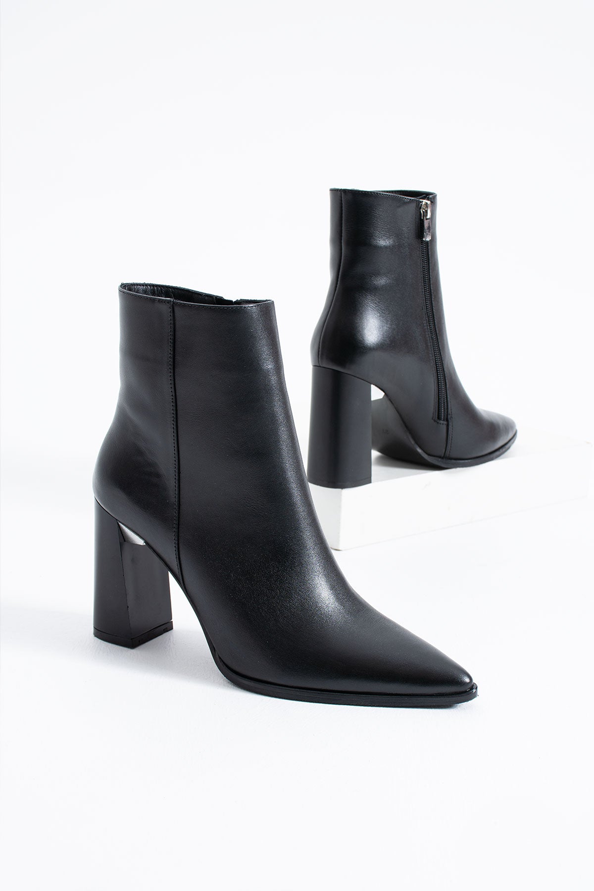 Yoro Kadın Hakiki Deri Fermuarlı Topuklu Bot Siyah