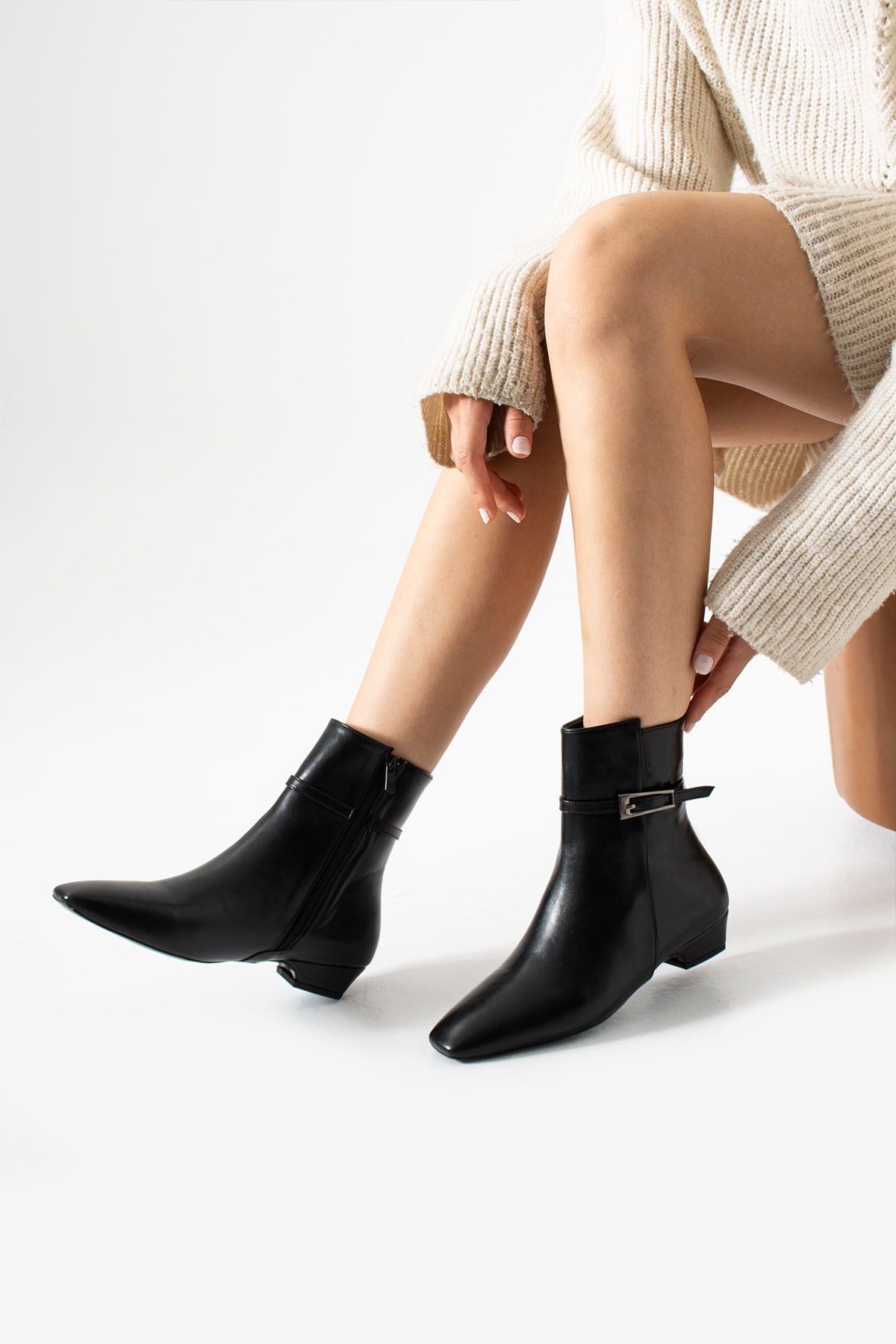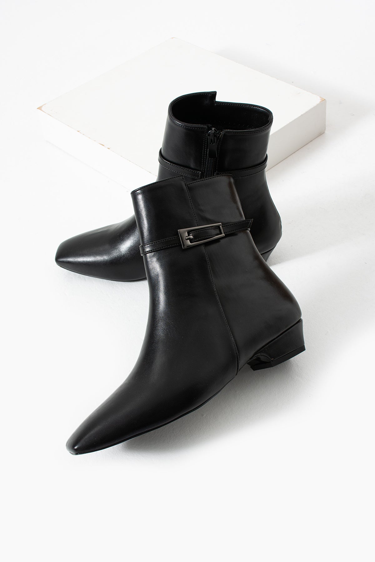 Oscar Kadın Toka Detaylı Kısa Topuklu Bot Siyah