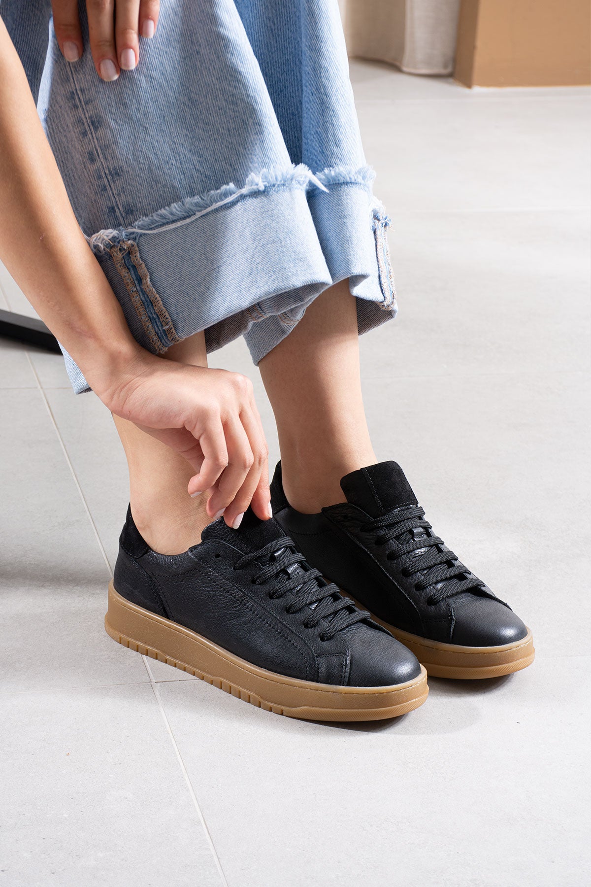 Alicia Kadın Bağcıklı Günlük Hakiki Deri Sneaker Siyah