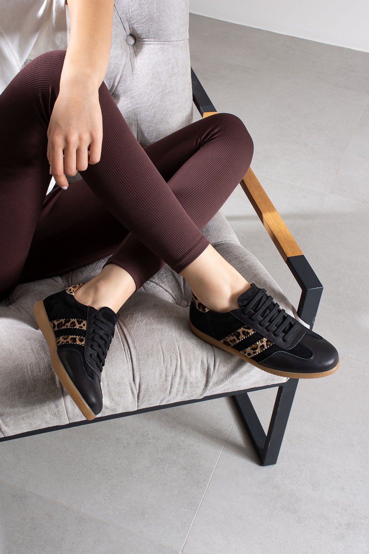 Atlas Kadın Bağcıklı Hakiki Deri Sneaker Siyah