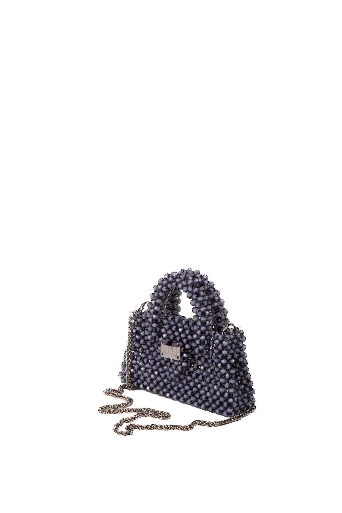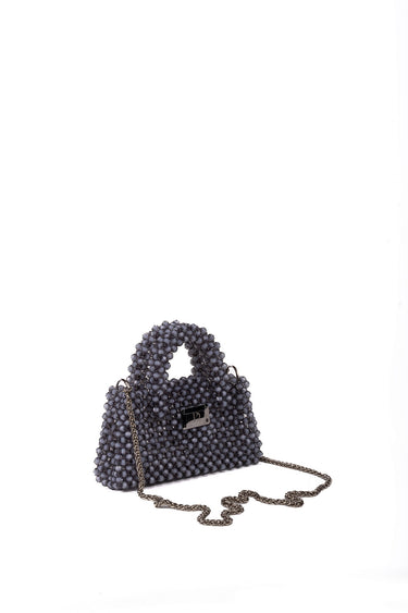 Double Handle Kadın Özel Tasarım Taşlı El Çantası Gri