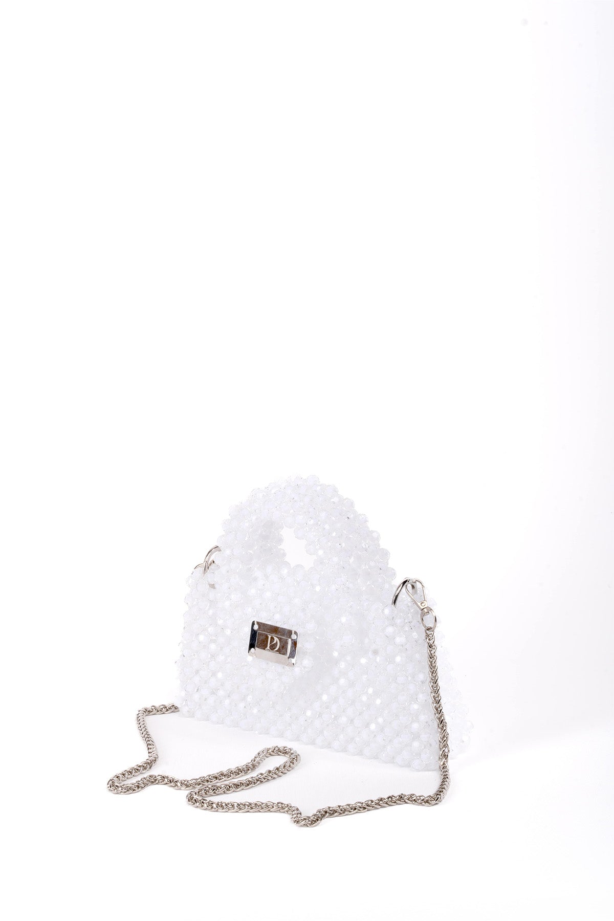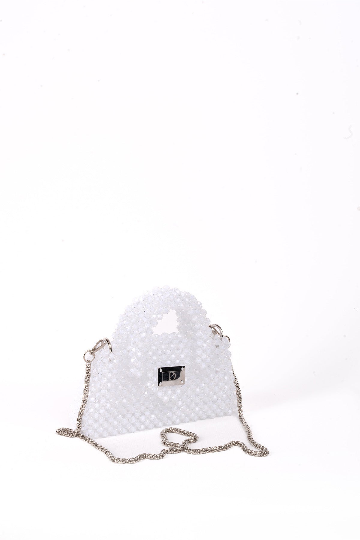 Mini Kadın Özel Tasarım Taşlı El Çantası Beyaz