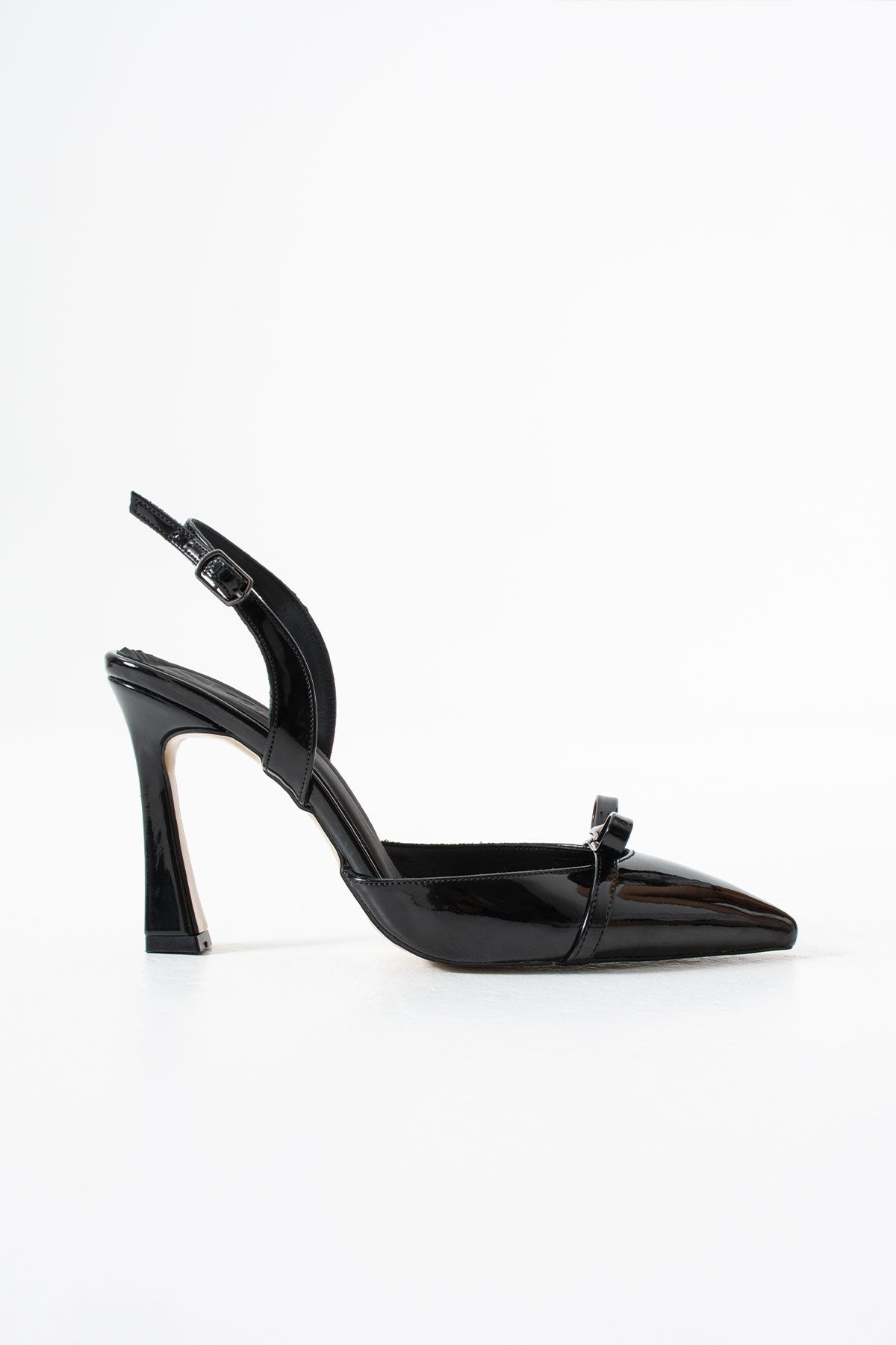 Parla Kadın Fiyonk Detaylı Topuklu Ayakkabı Siyah Rugan