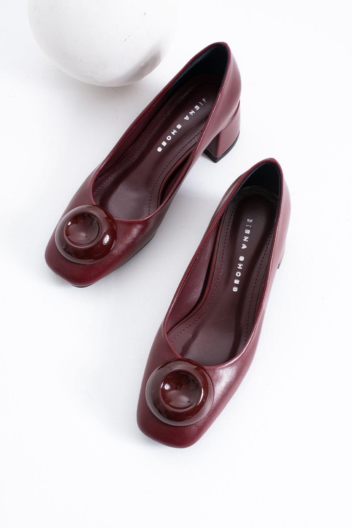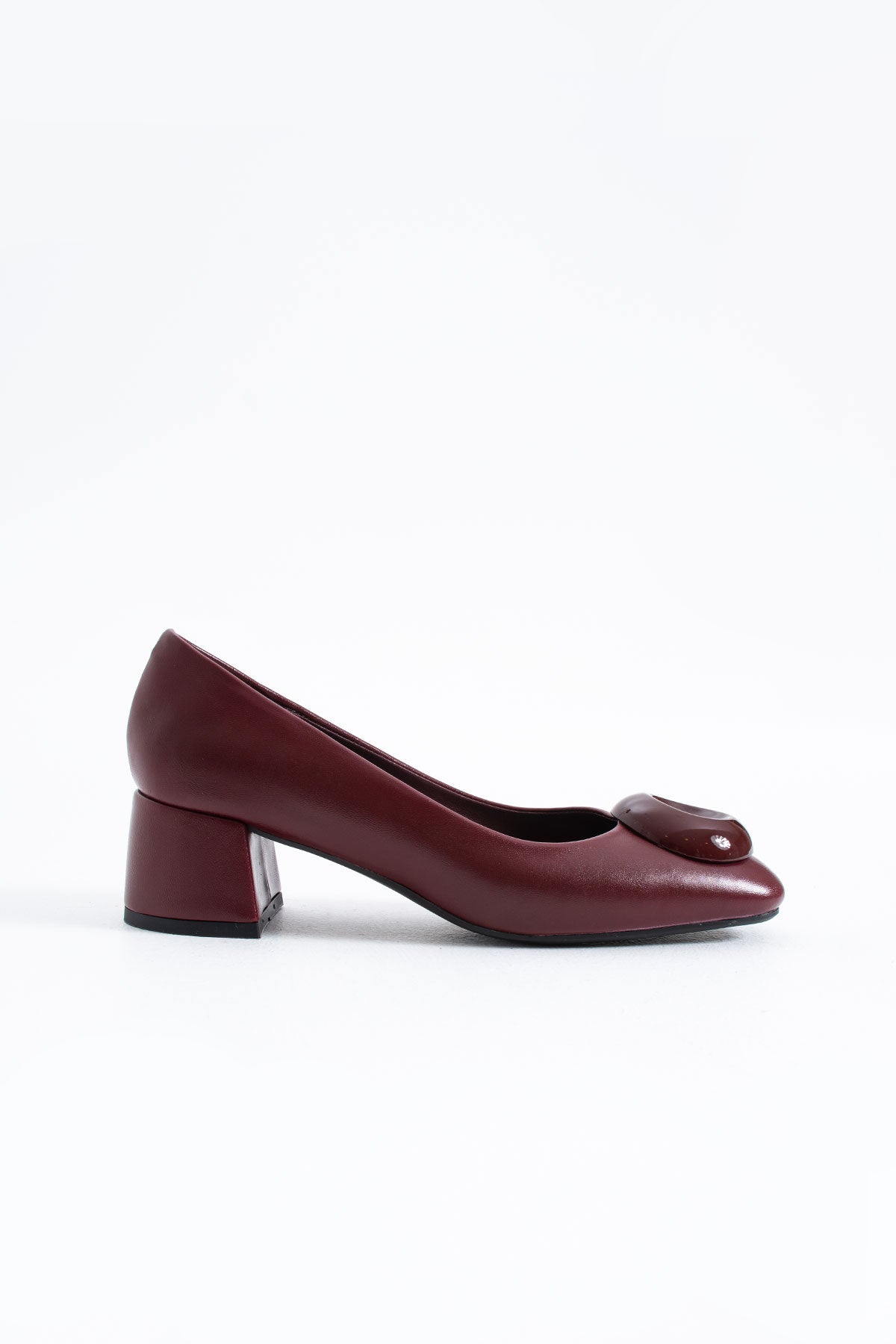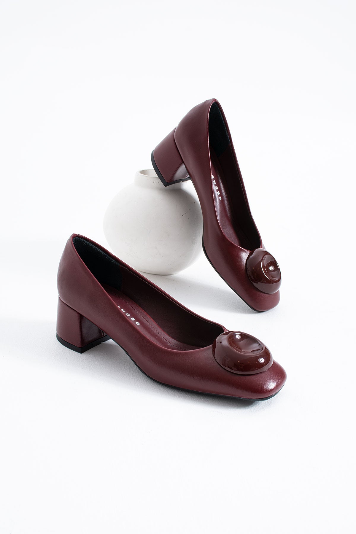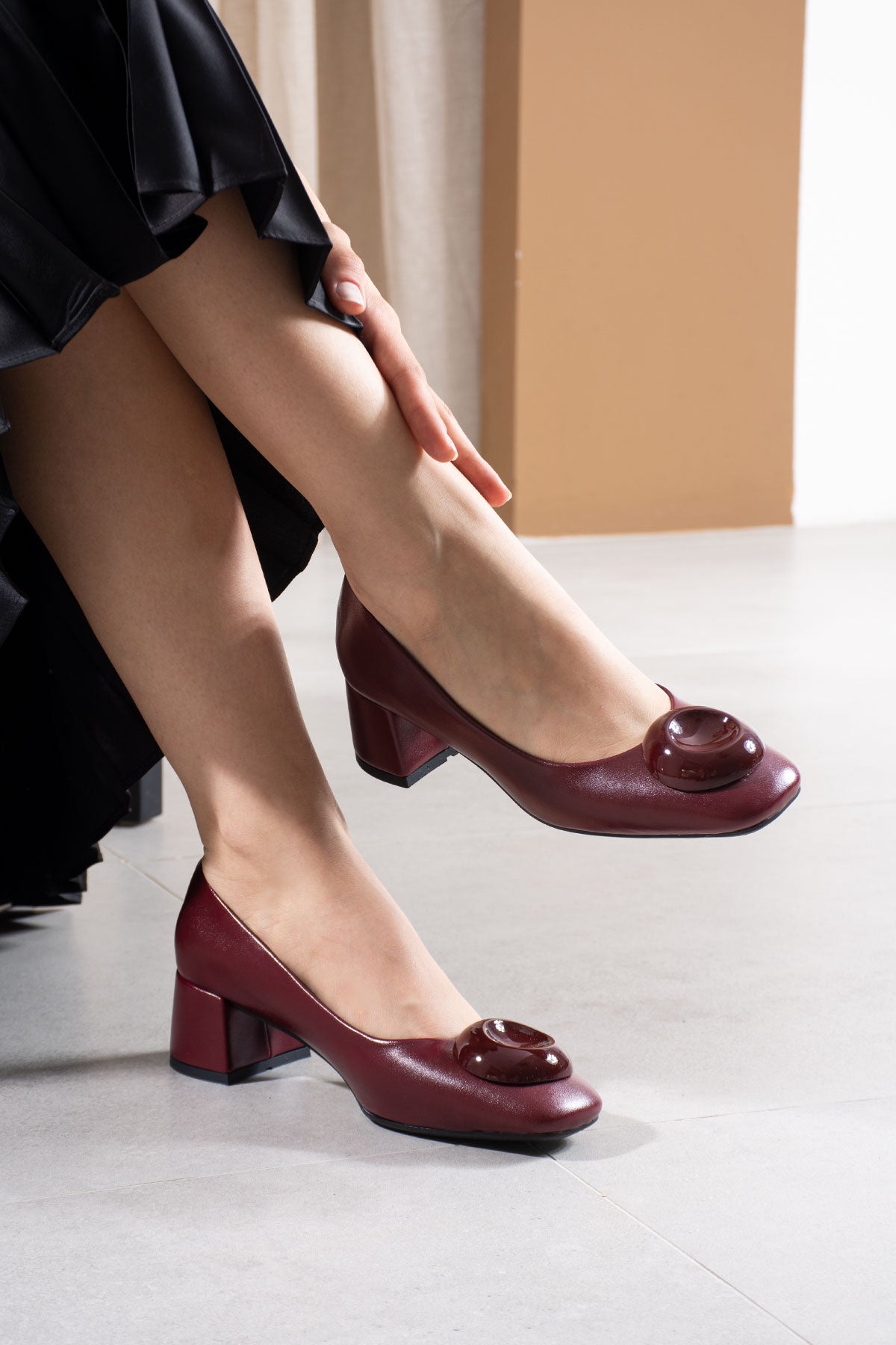 Rosira Kadın Toka Detaylı Hakiki Deri Topuklu Ayakkabı Bordo