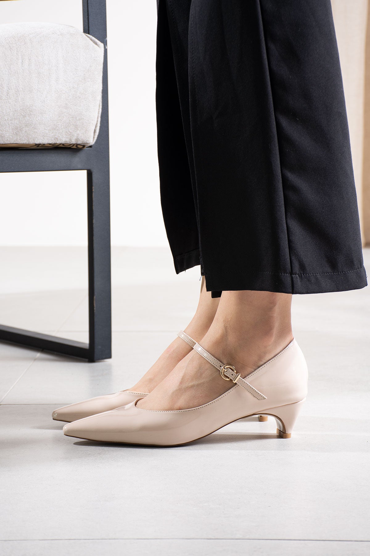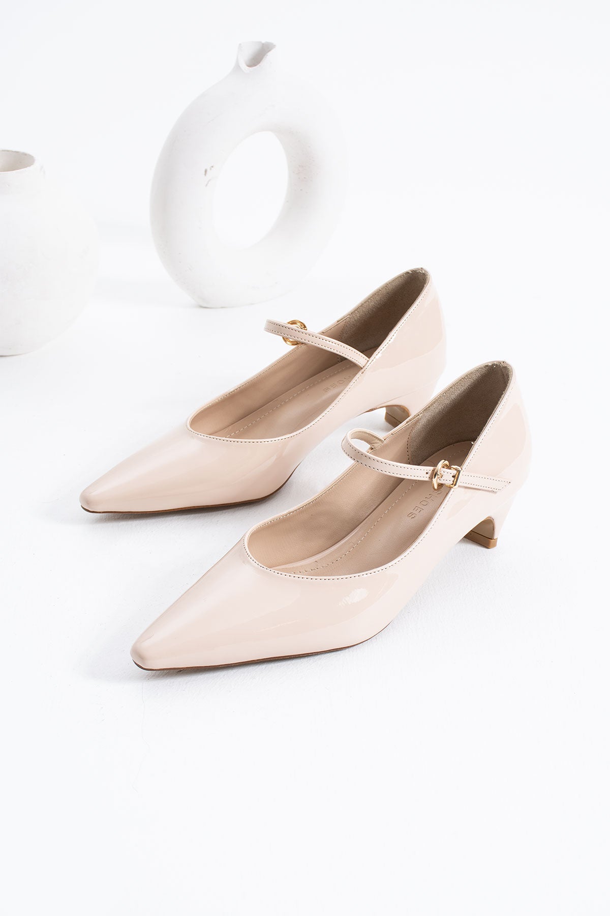 Tosey Kadın Bant Lastikli Topuklu Ayakkabı Bej Rugan