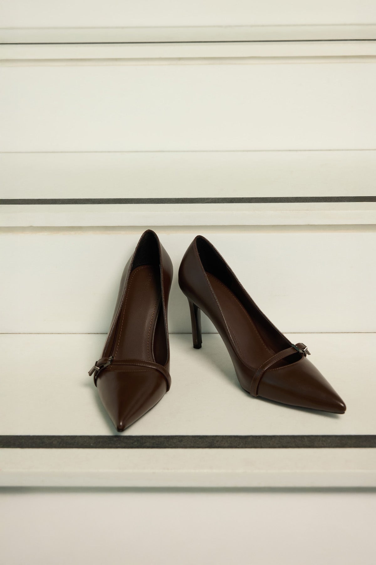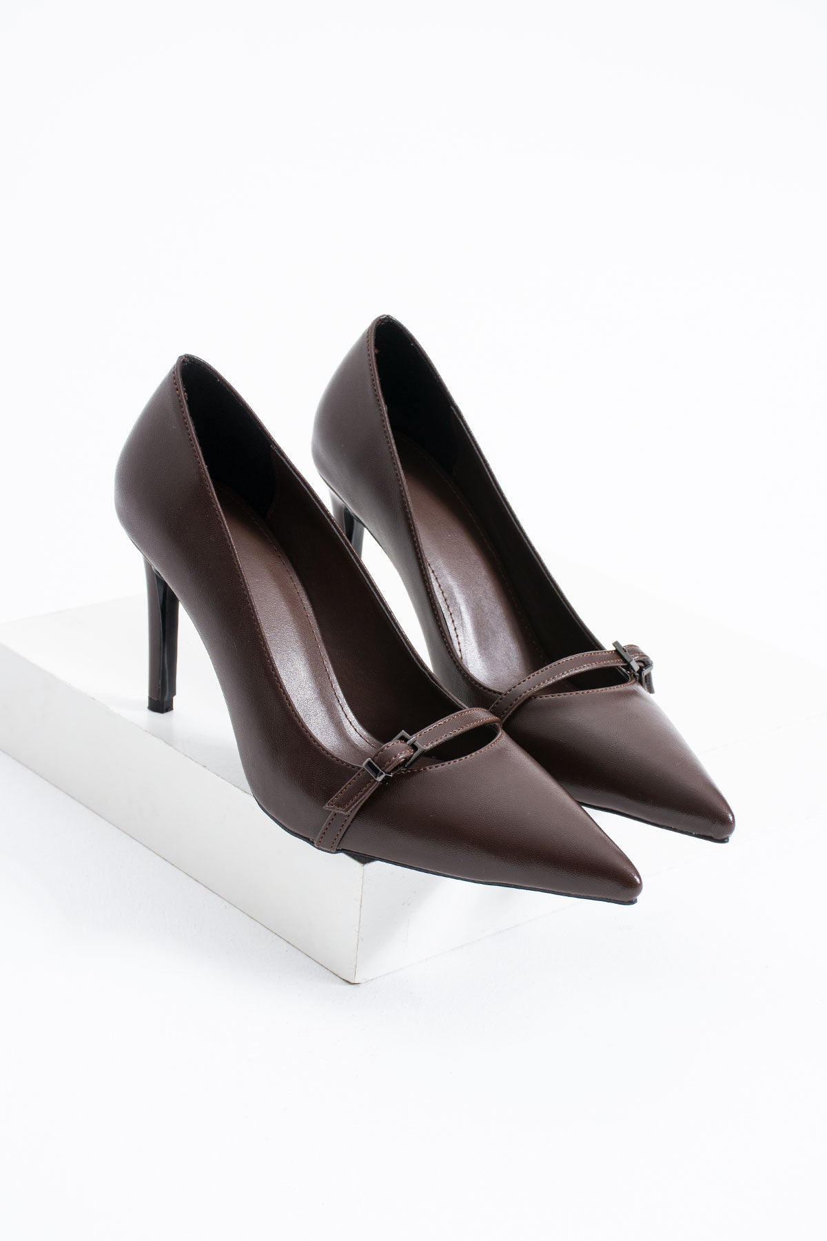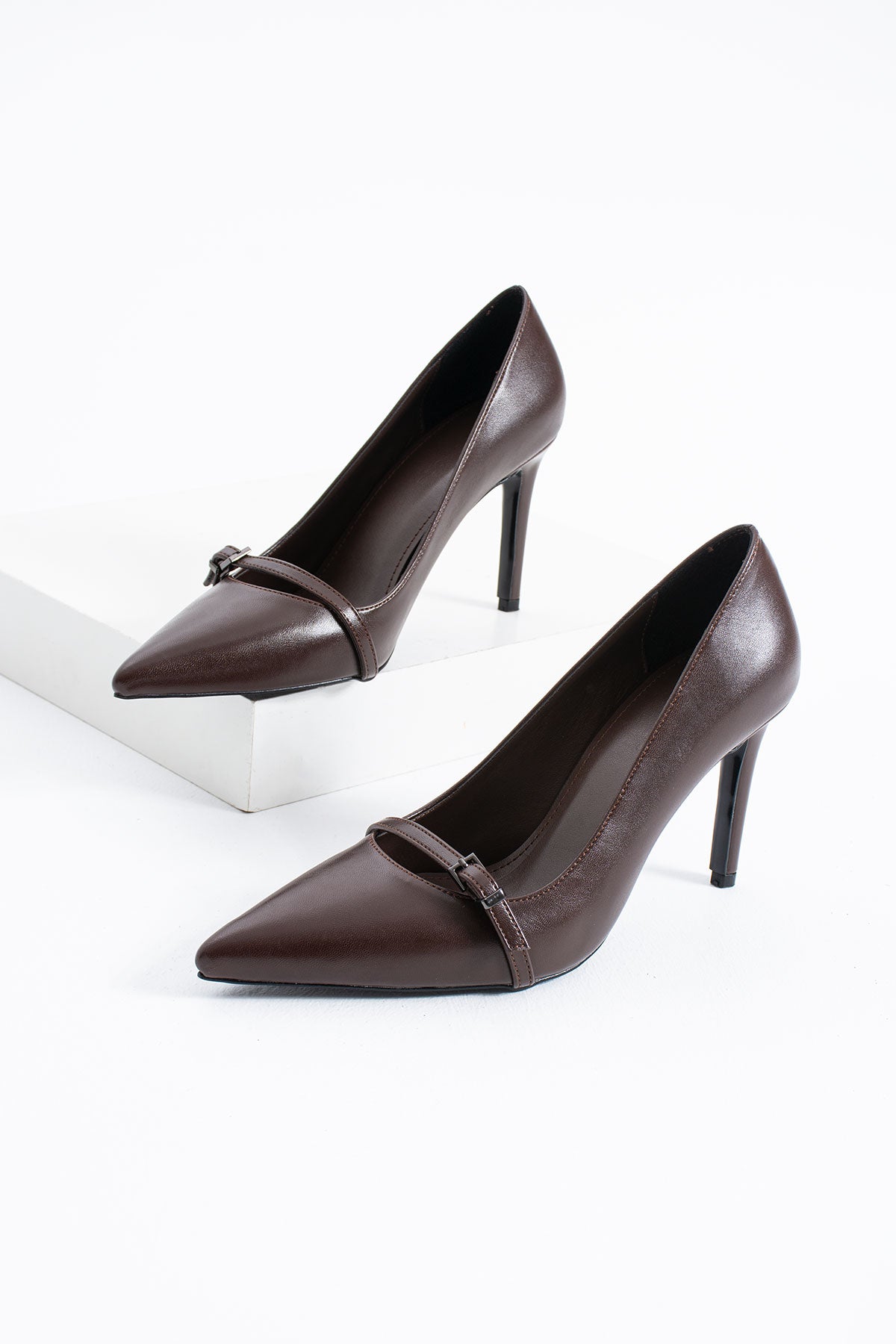Zarte Kadın Stiletto Toka Detaylı Topuklu Ayakkabı Kahve