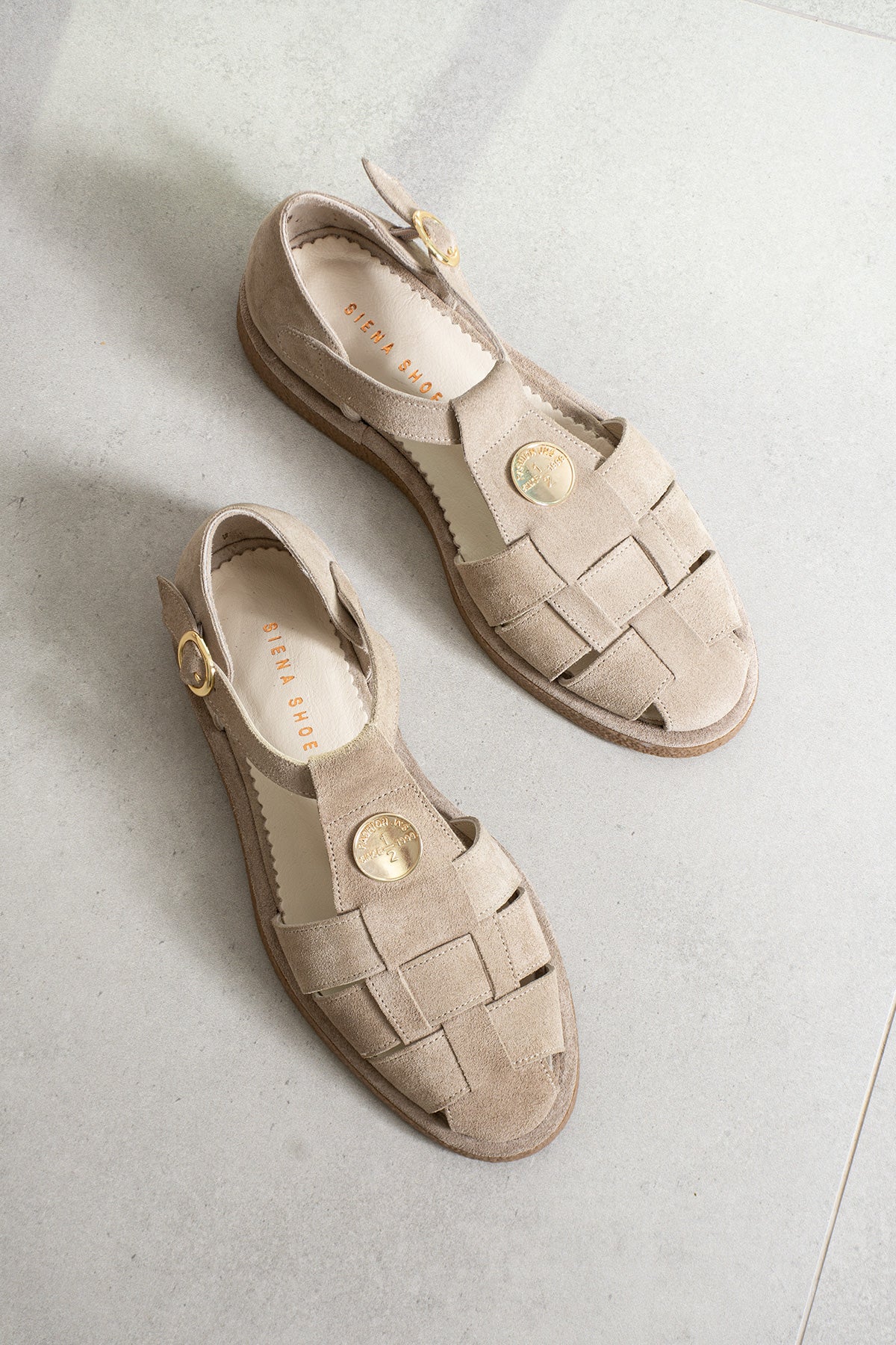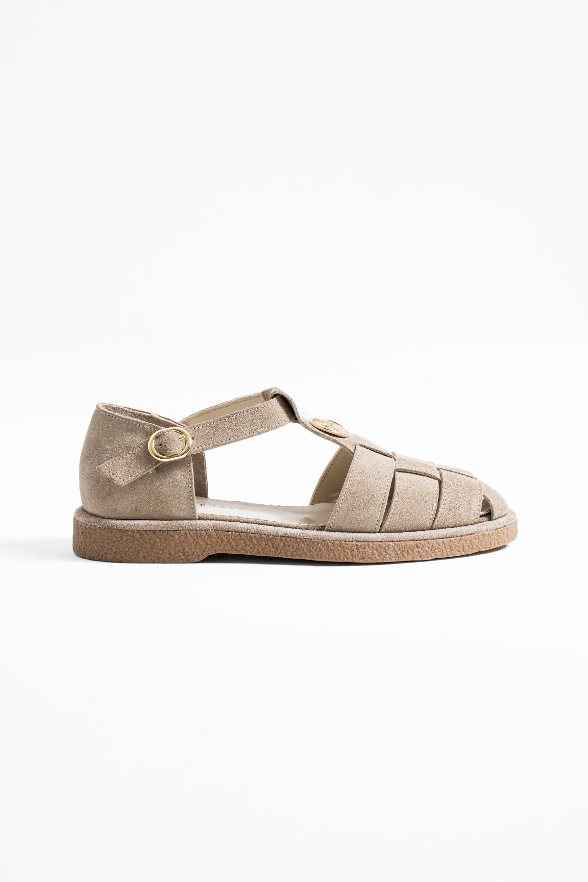Aluna Kadın Toka Detaylı Hakiki Deri Sandalet Bej Süet