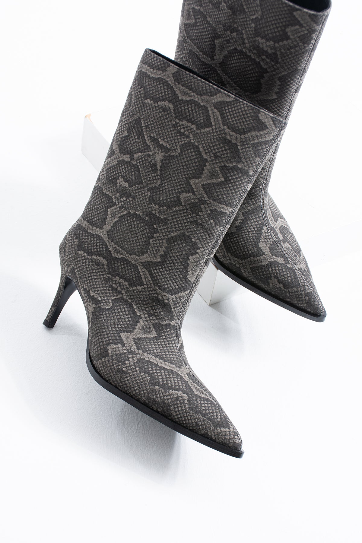 Crista Kadın Günlük Topuklu Bot Gri Yılan