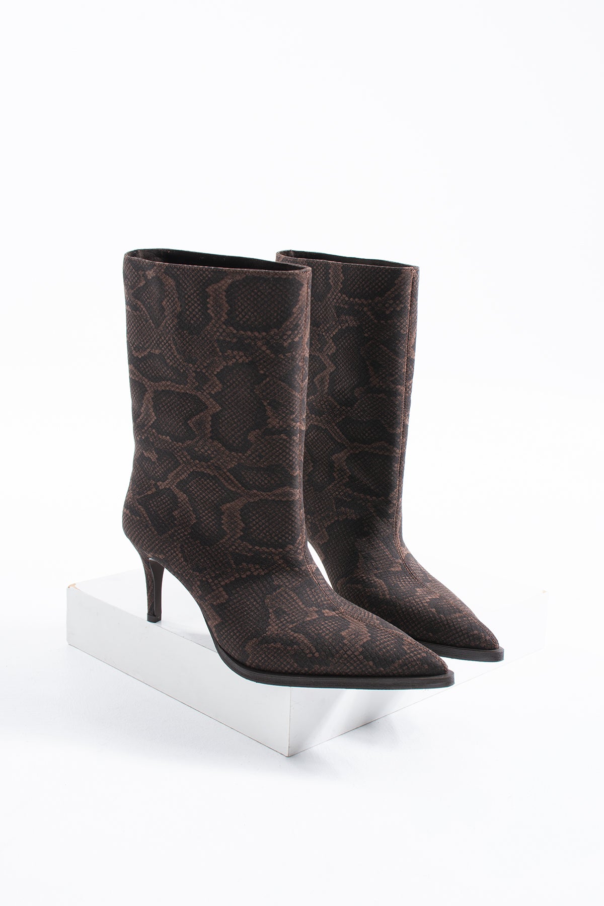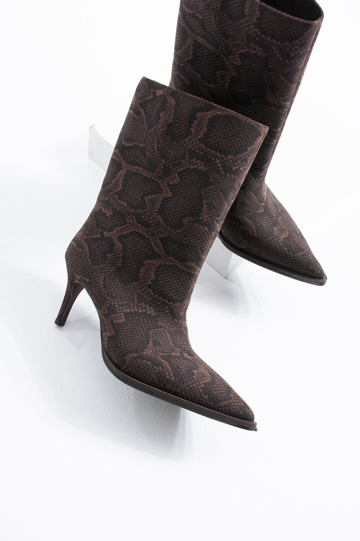Crista Kadın Günlük Topuklu Bot Kahve Yılan
