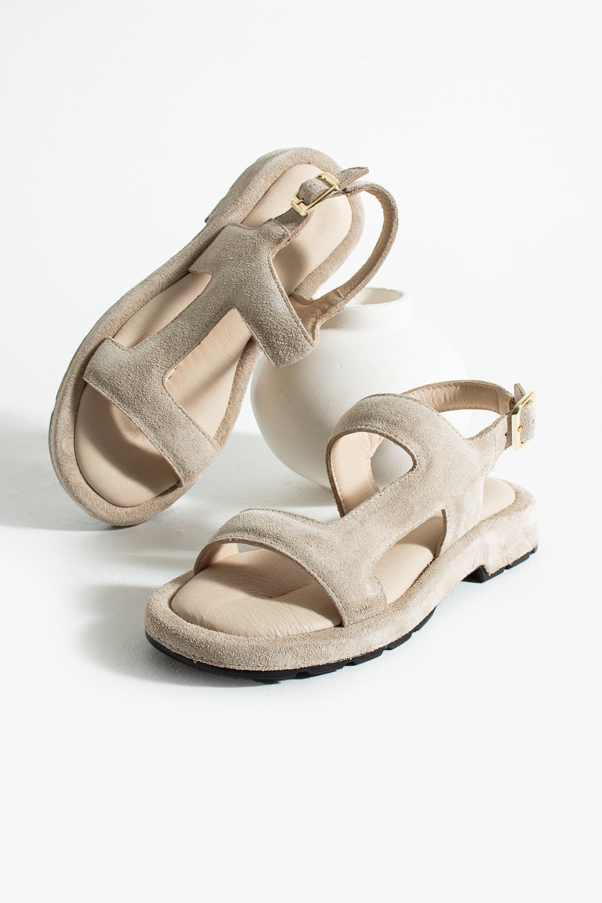 Elvia Kadın Hakiki Deri Sandalet Bej Süet
