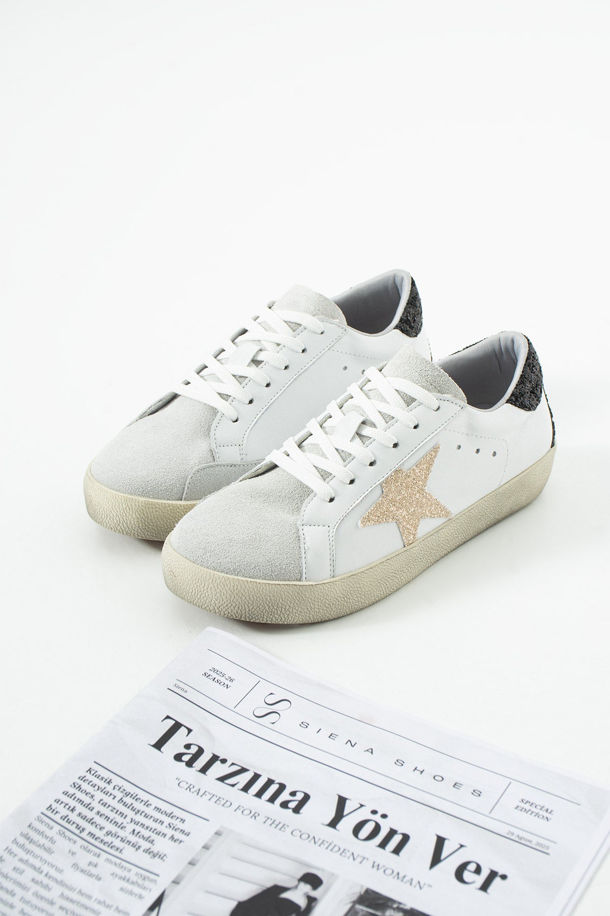 Göz alıcı detayları ve modern tasarımıyla Gossy, günlük stiline ışıltılı bir dokunuş katmak isteyenler için tasarlandı. Parlak simli yüzeyi ve zarif yıldız detayı sayesinde hem spor hem şık kombinlerin vazgeçilmez parçası olacak. Yumuşak iç tabanı gün boyu konfor sağlarken, dayanıklı dış tabanı rahat ve güvenli bir kullanım sunar. Günlük kombinlerden özel davetlere kadar her ortamda stilini öne çıkarır.
