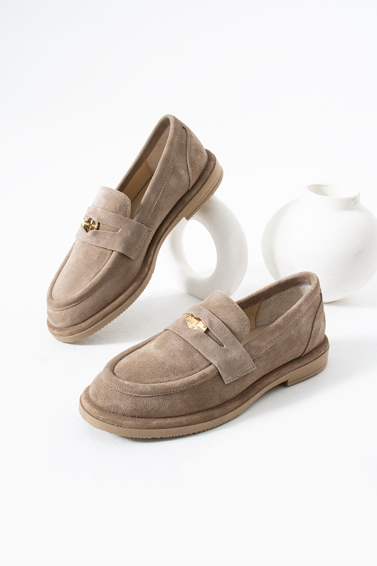 Helena Kadın Toka Detaylı Hakiki Deri Loafer Bej Süet