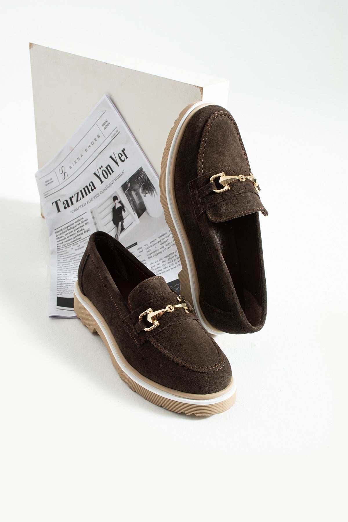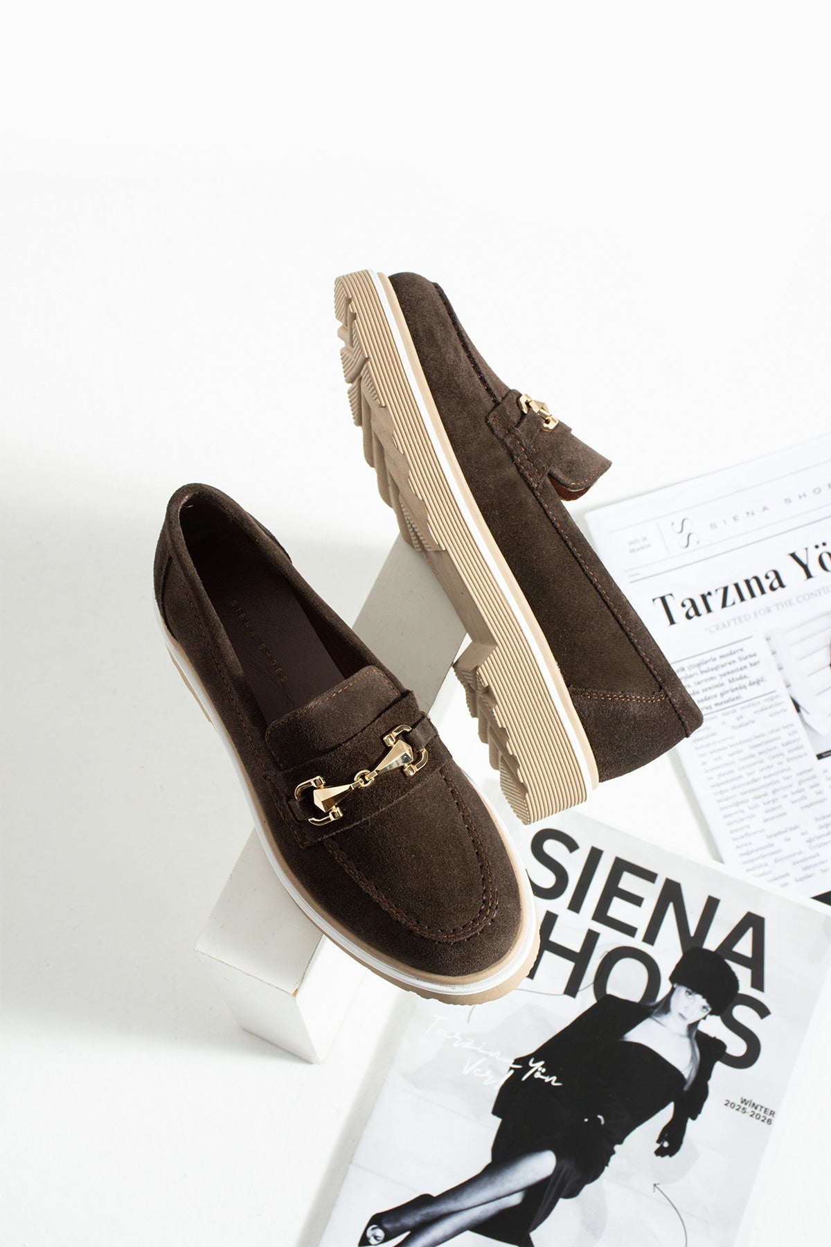 Hugo Kadın Toka Detaylı Hakiki Deri Loafer Kahve Süet