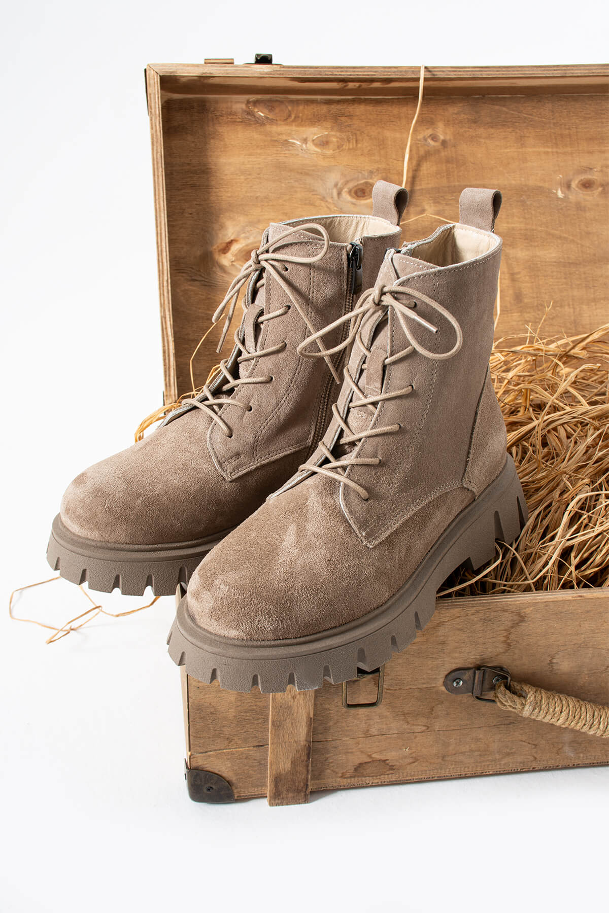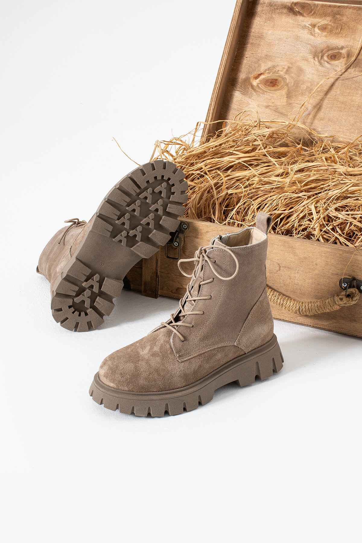 Lucia Kadın Bağcıklı Hakiki Deri Bot Bej Süet