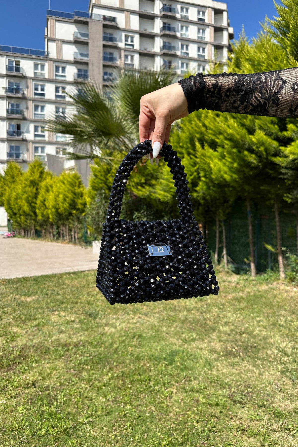 Merkür Kadın Özel Tasarım Taşlı El Çantası Siyah