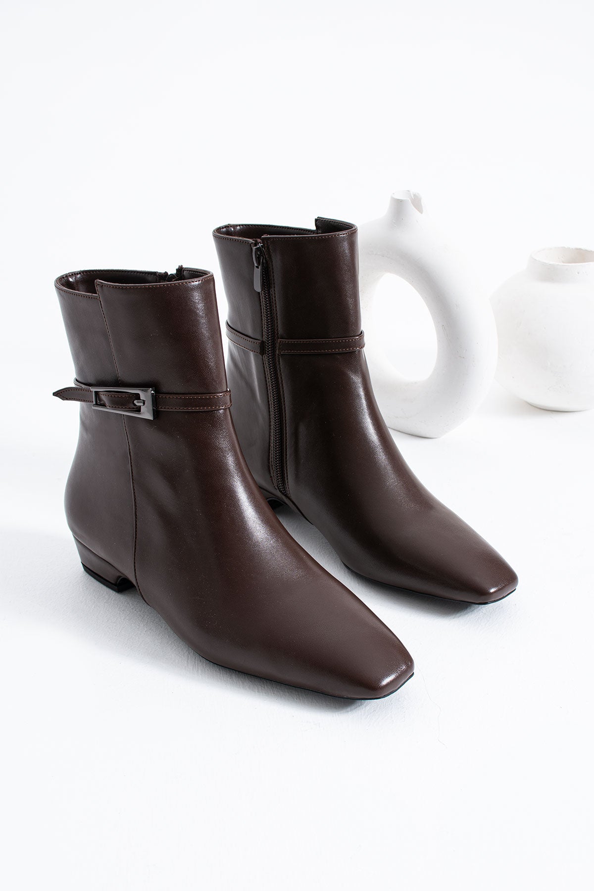 Oscar Kadın Toka Detaylı Kısa Topuklu Bot Kahve