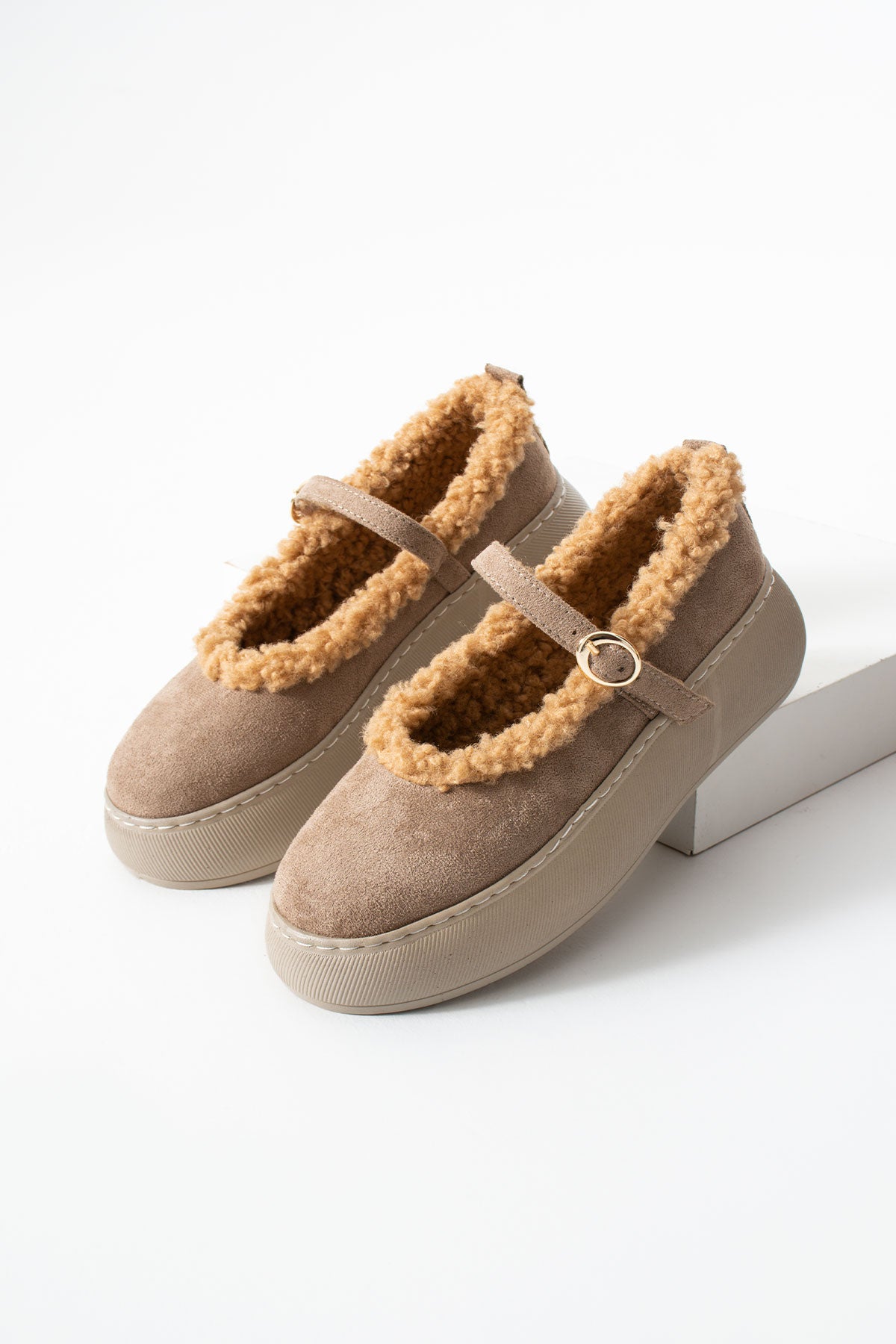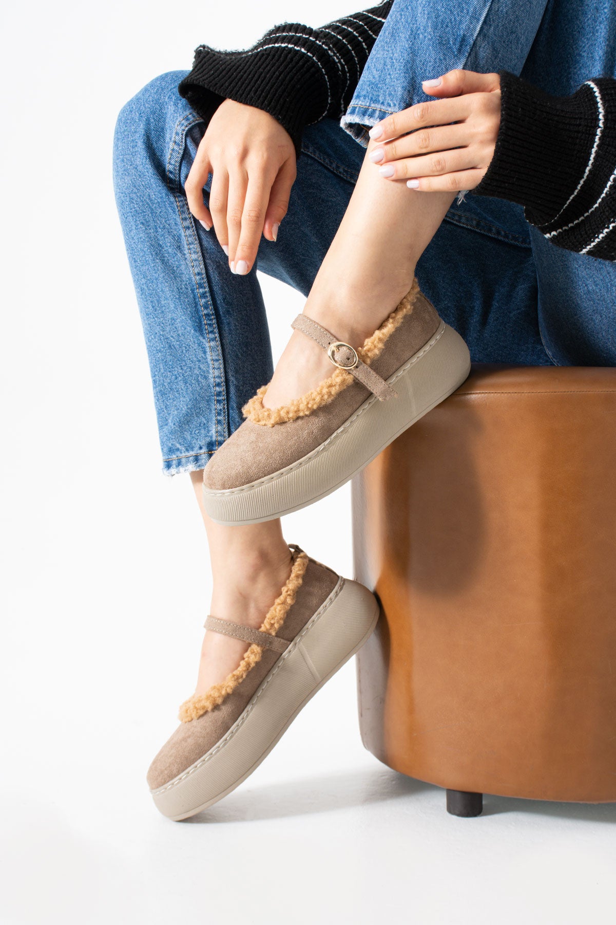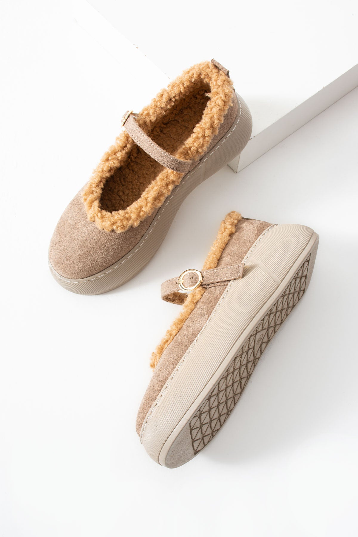 Poopy Kadın Kürklü Sneaker Babet Bej Süet