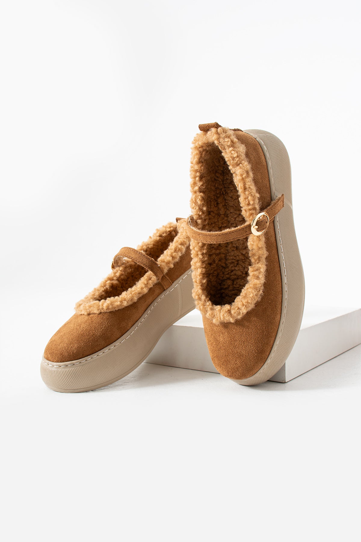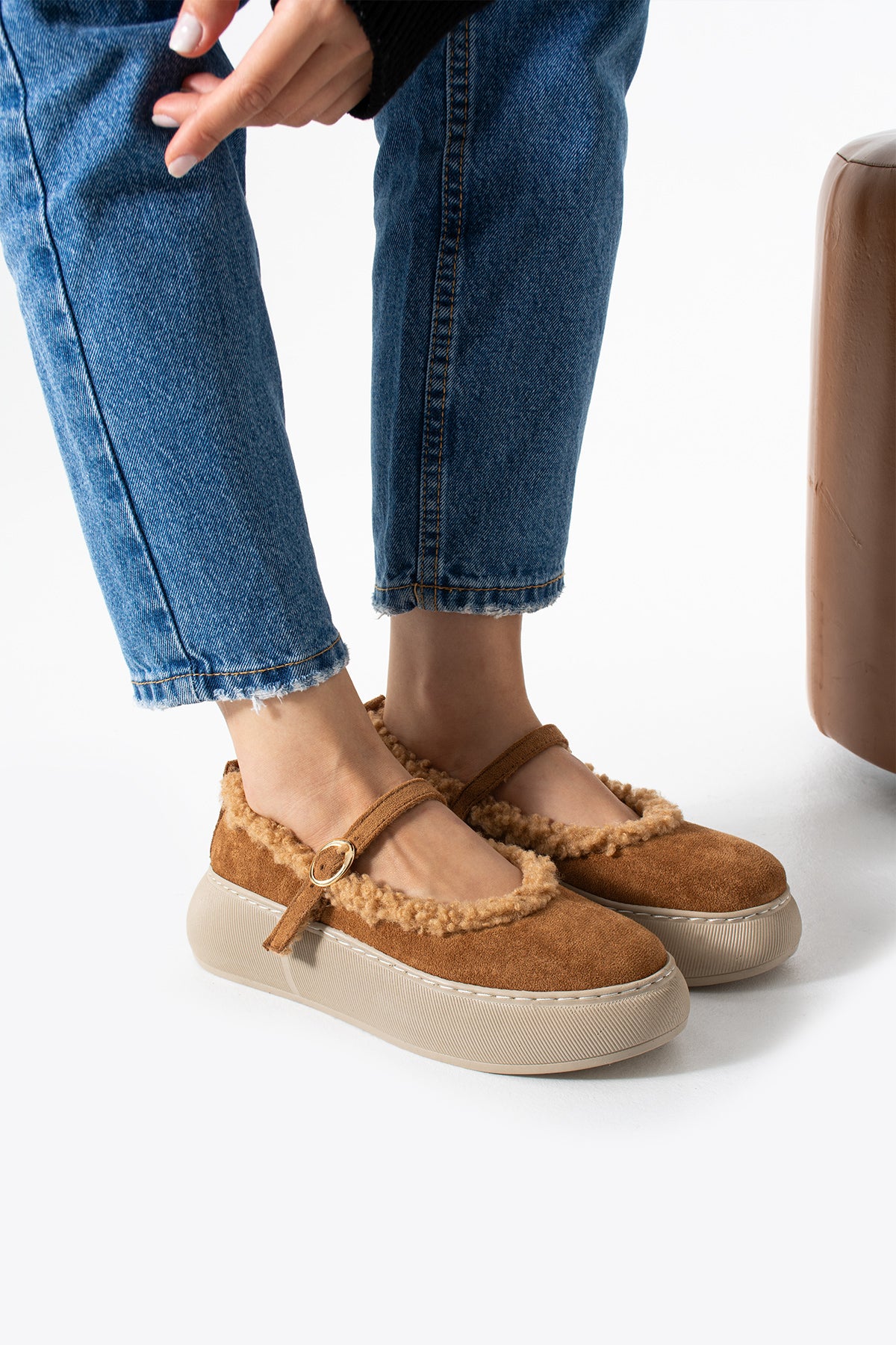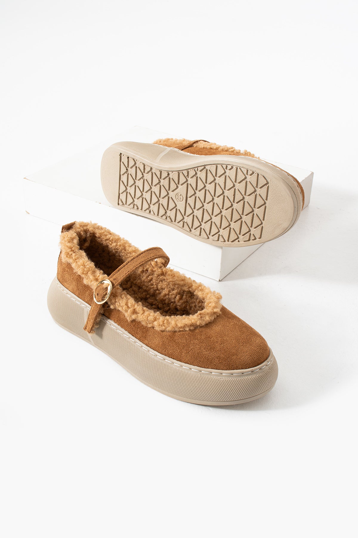 Poopy Kadın Kürklü Sneaker Babet Taba Süet