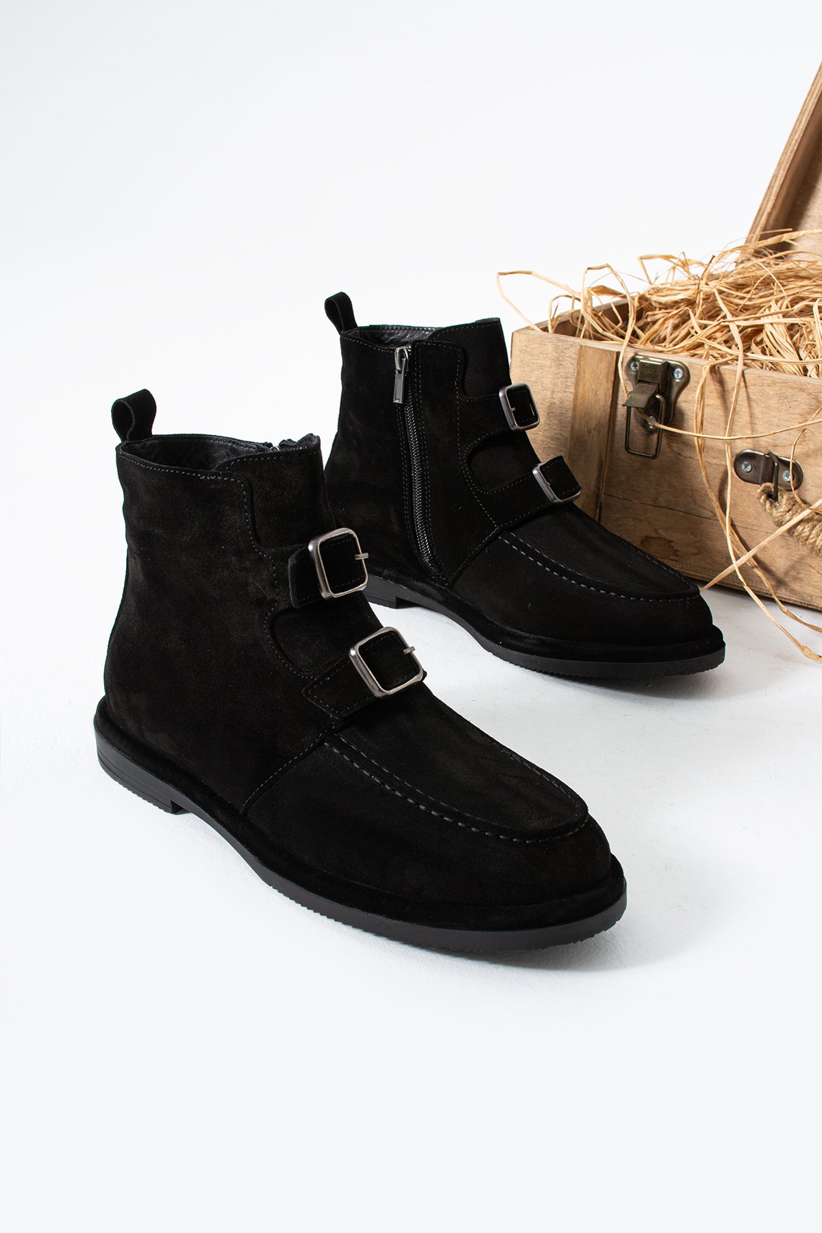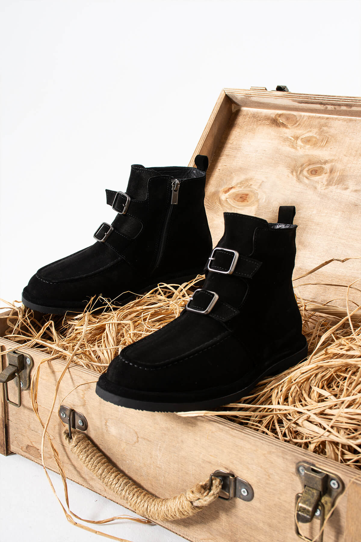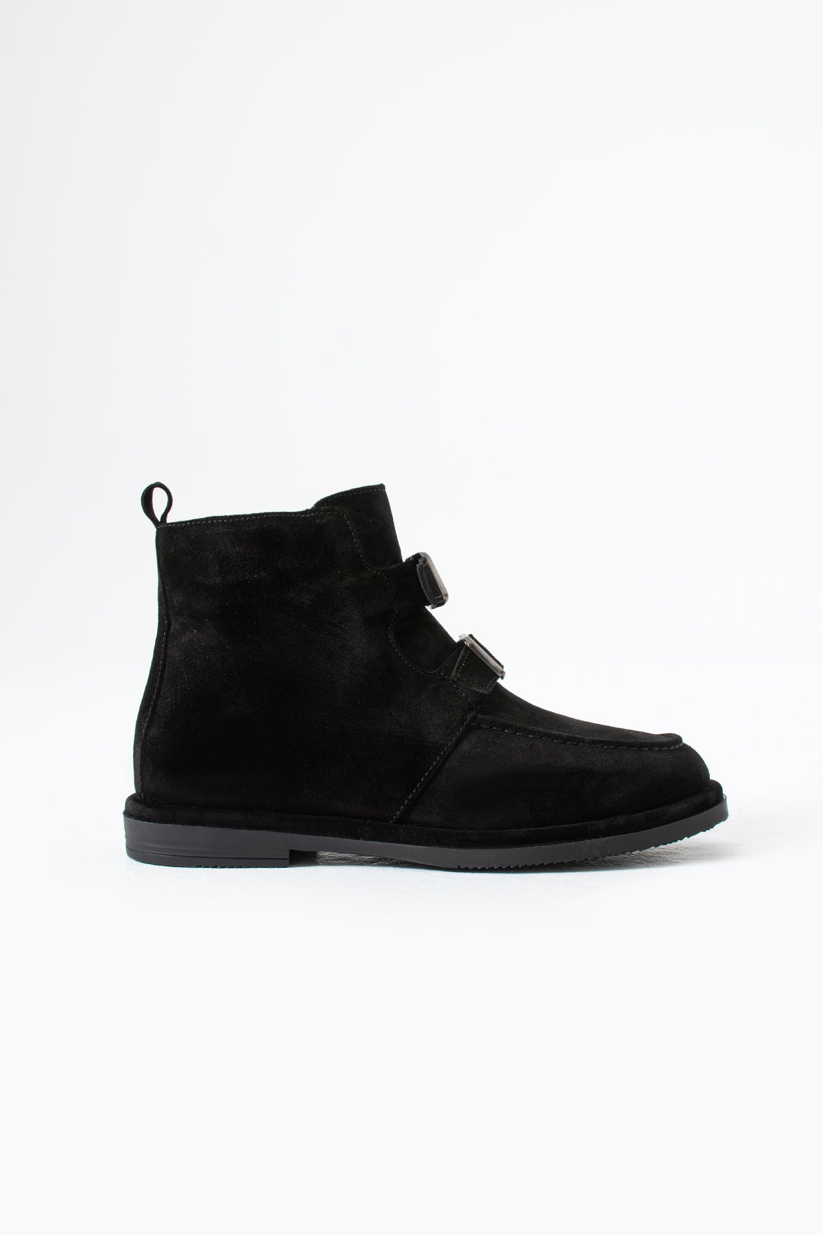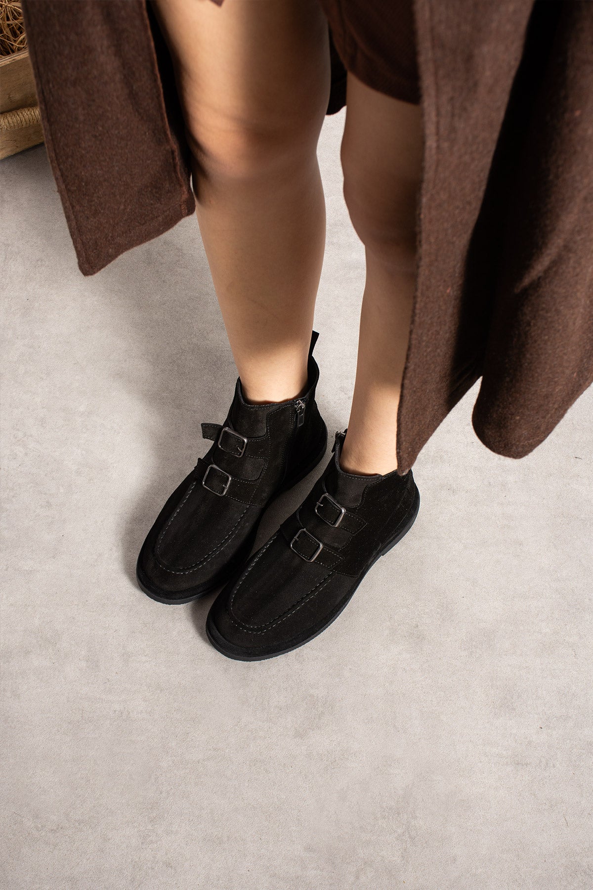 Rogue Kadın Toka Detaylı Hakiki Deri Bot Siyah Süet