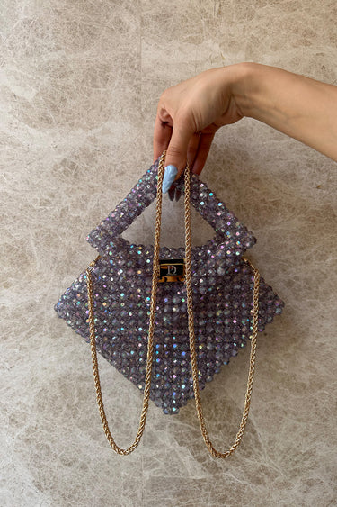 Satürn Kadın Özel Tasarım Taşlı El Çantası Gri