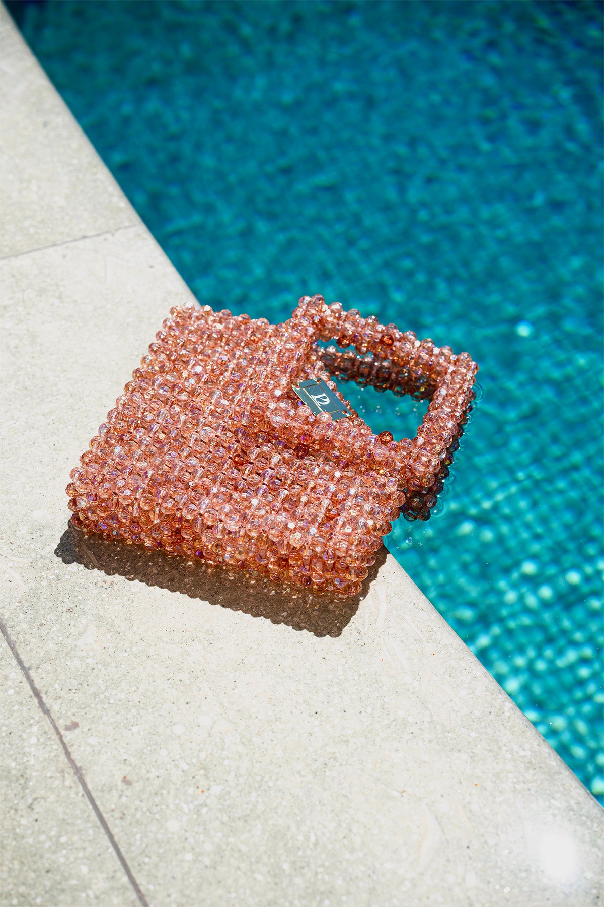 Satürn Kadın Özel Tasarım Taşlı El Çantası Somon