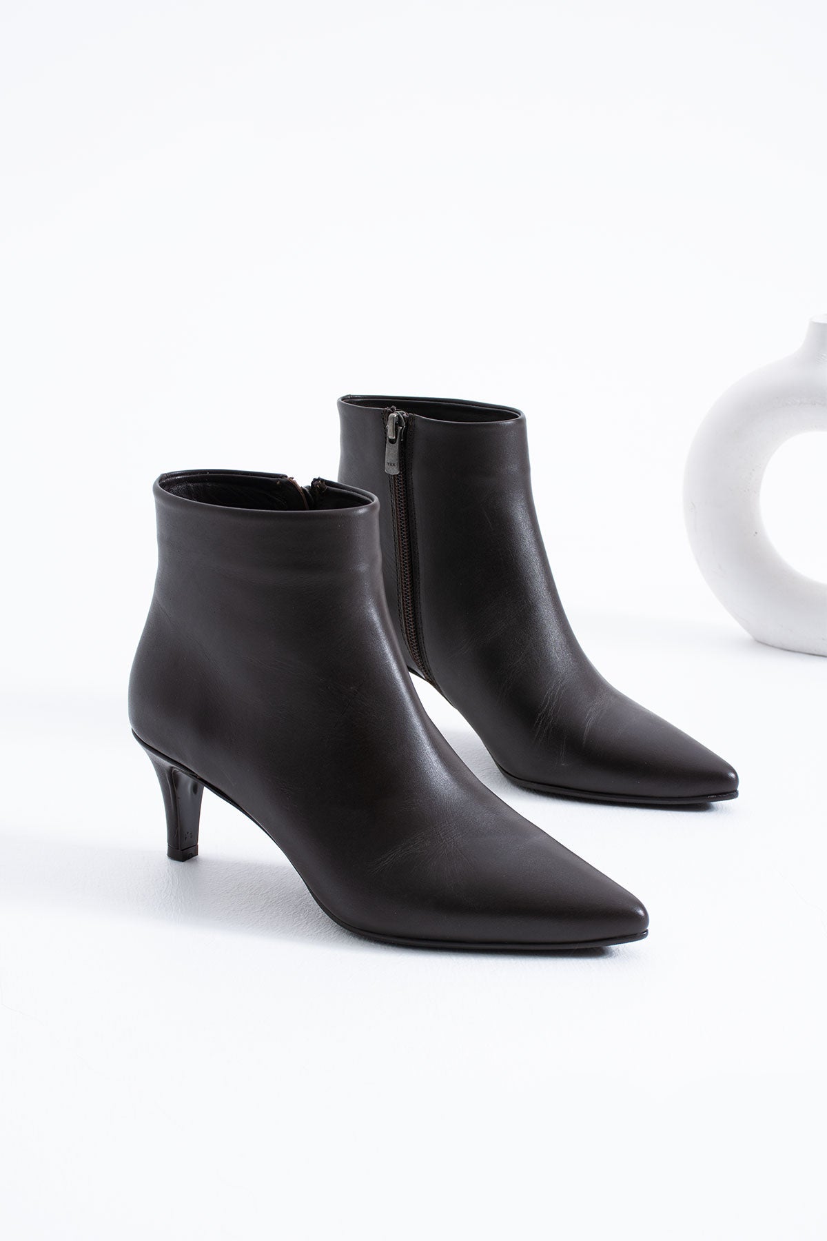 Sophia Kadın Fermuarlı Hakiki Deri Topuklu Bot Kahve