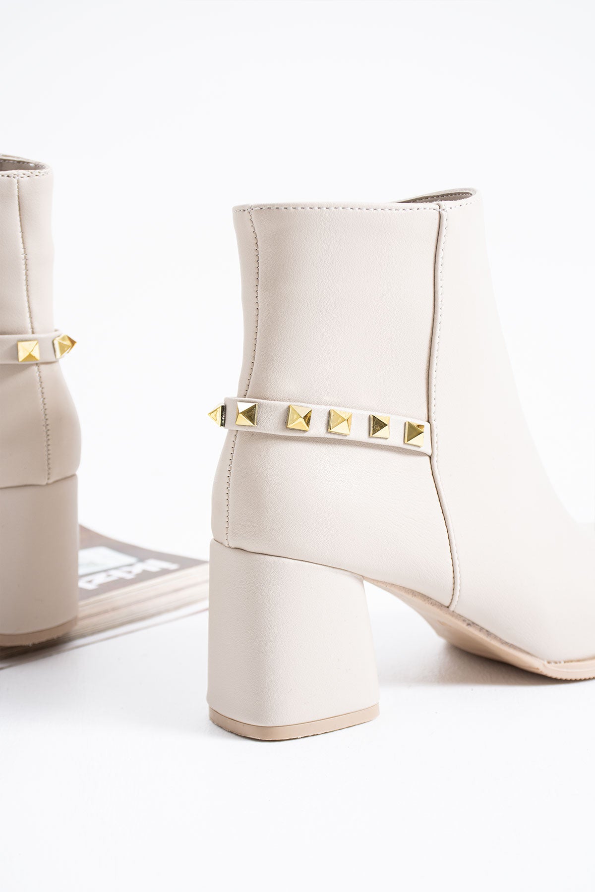 Torre Kadın Toka Detaylı Fermuarlı Topuklu Bot Bej
