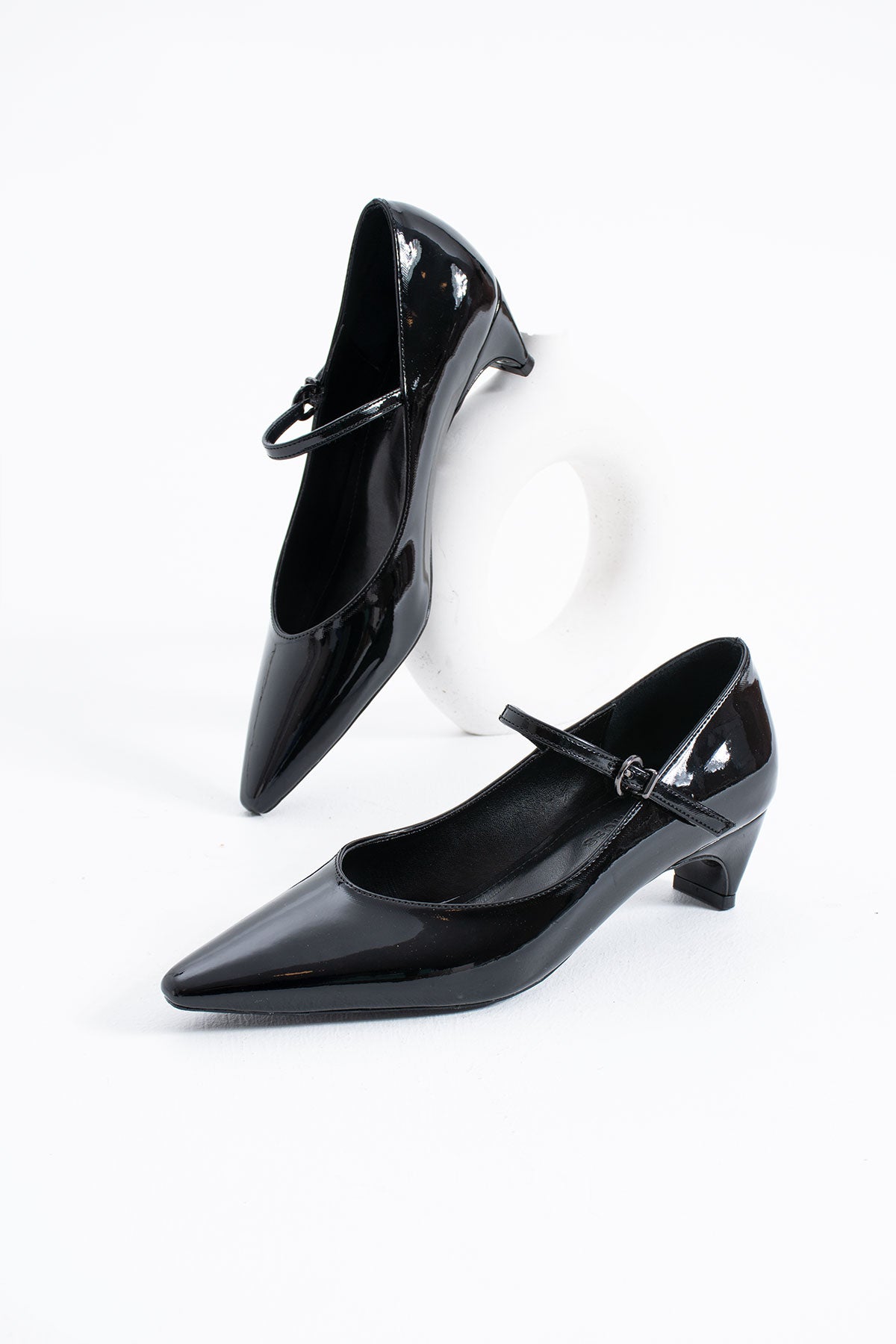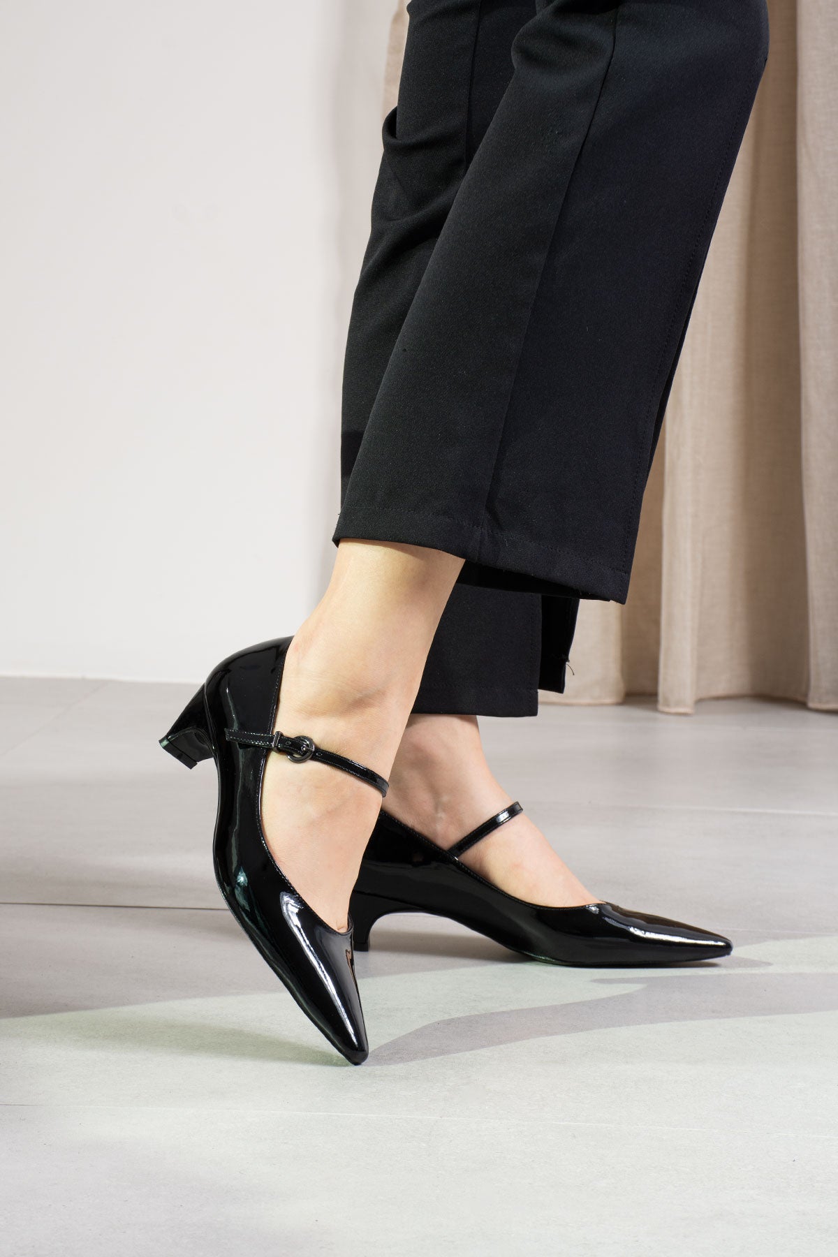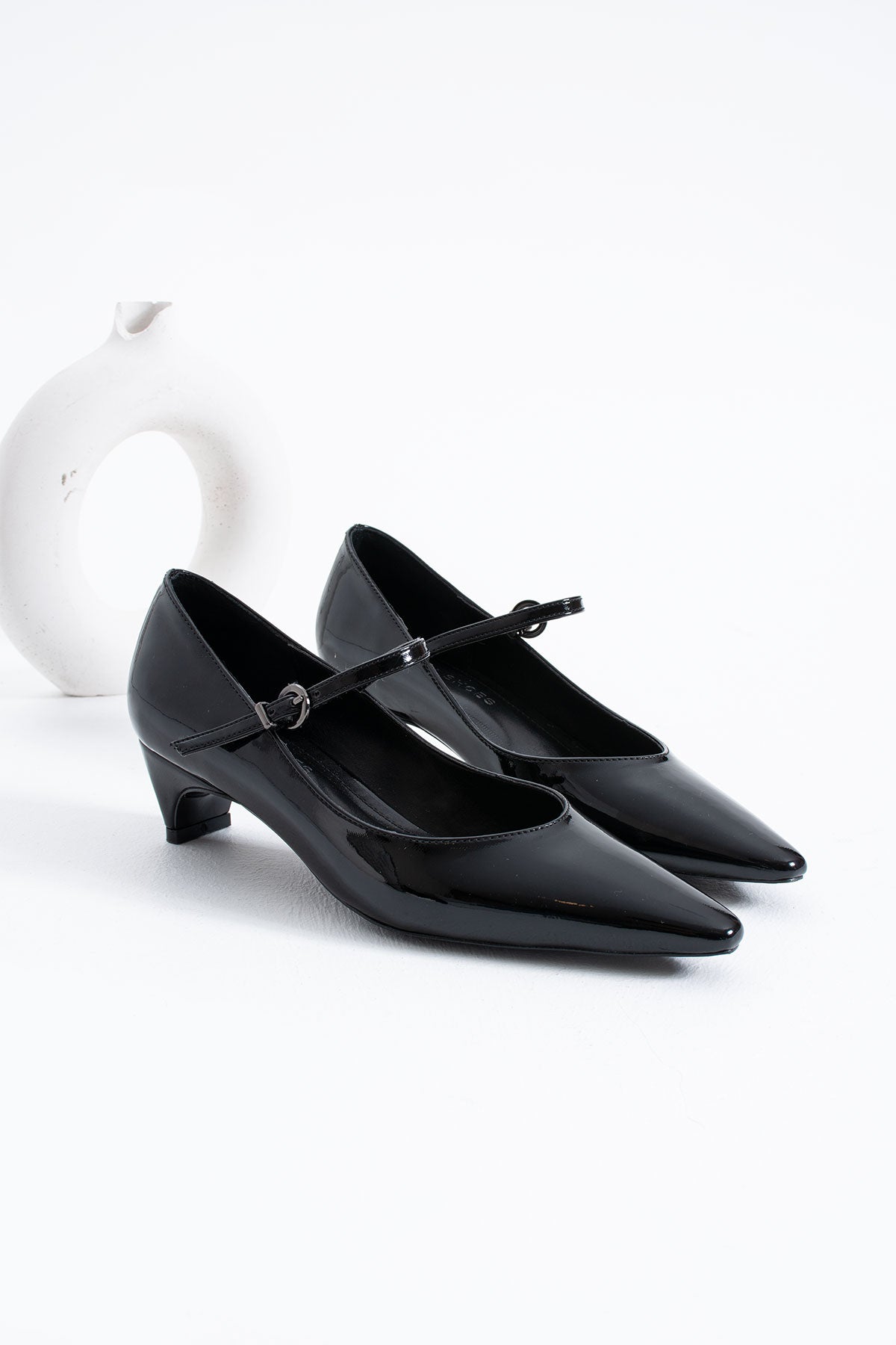 Tosey Kadın Bant Lastikli Topuklu Ayakkabı Siyah Rugan