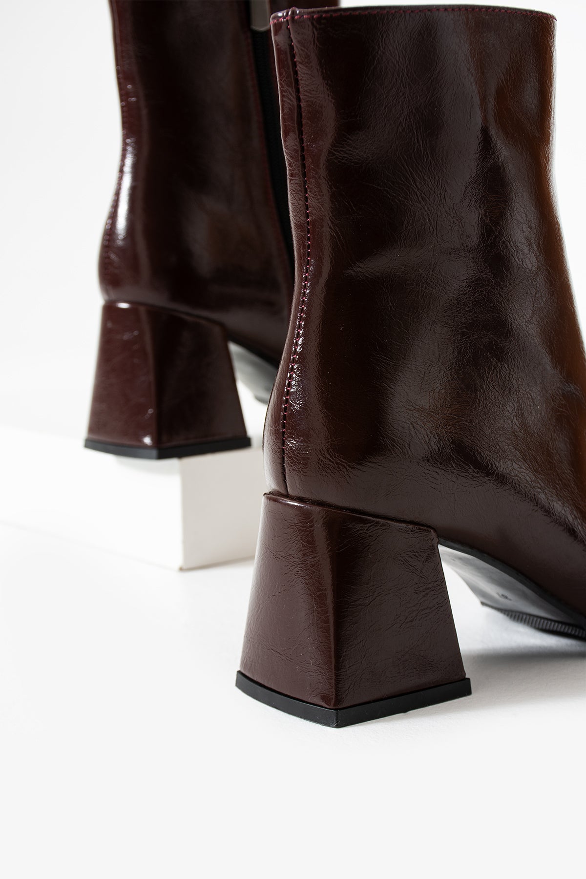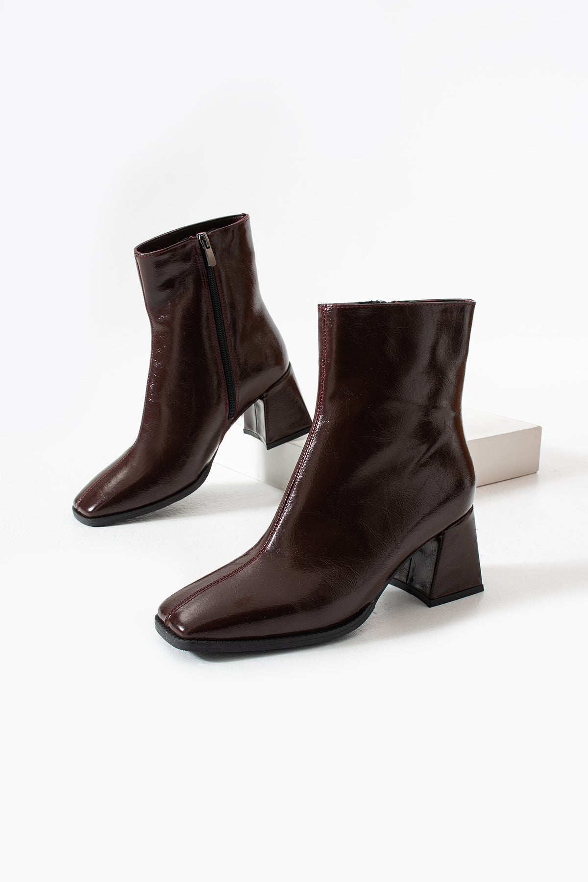Totti Kadın Fermuarlı Günlük Topuklu Bot Bordo Rugan