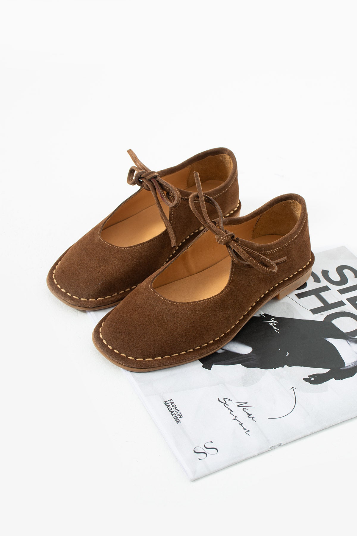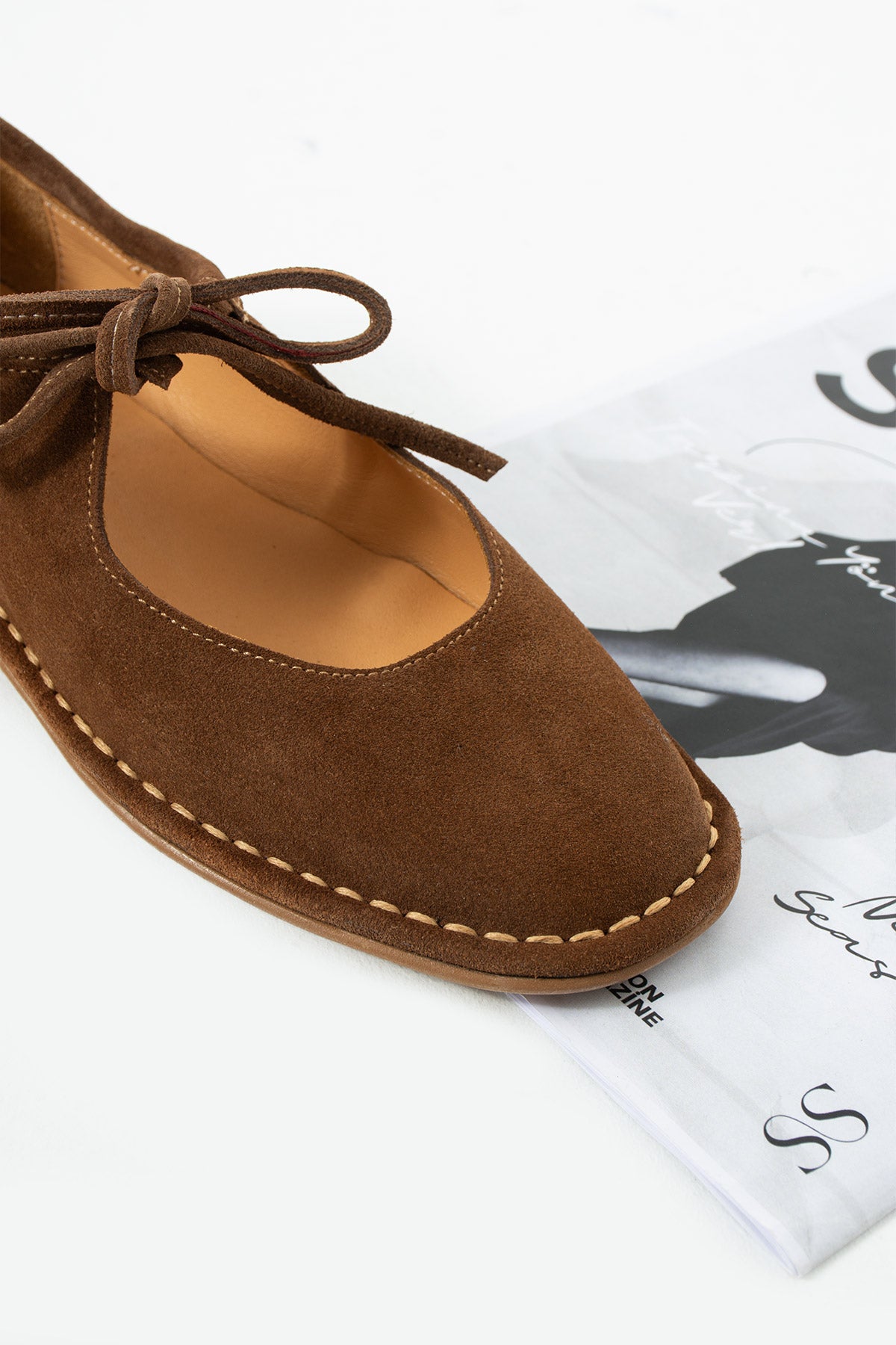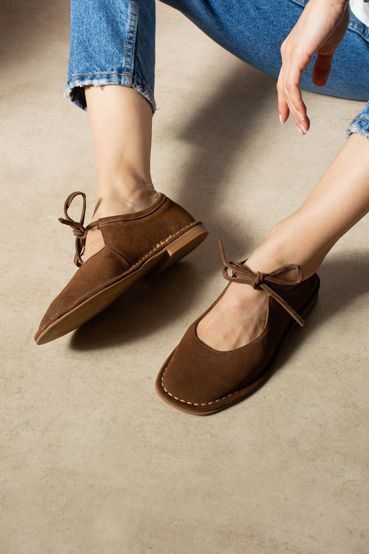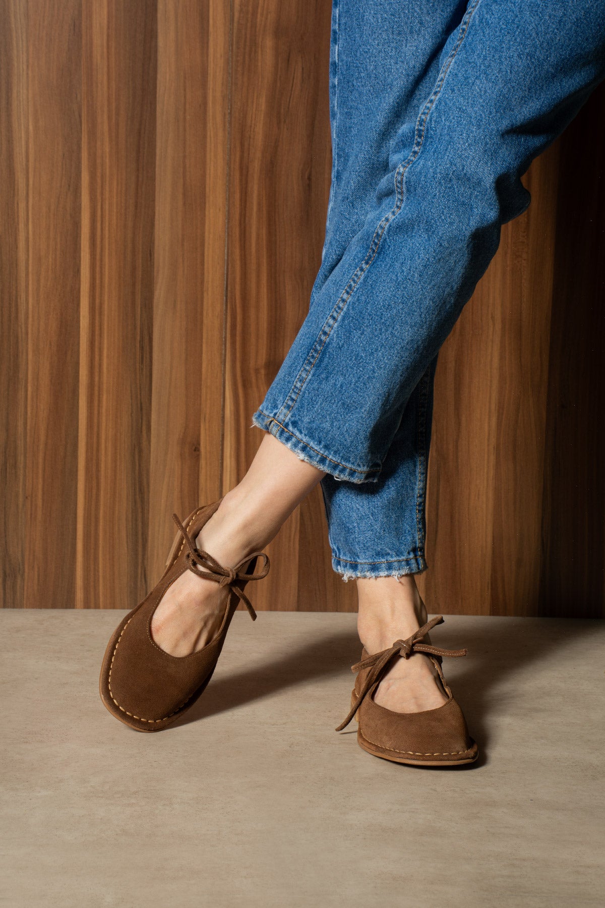 Ulya Kadın Bağcıklı Lastikli Hakiki Deri Babet Taba Süet