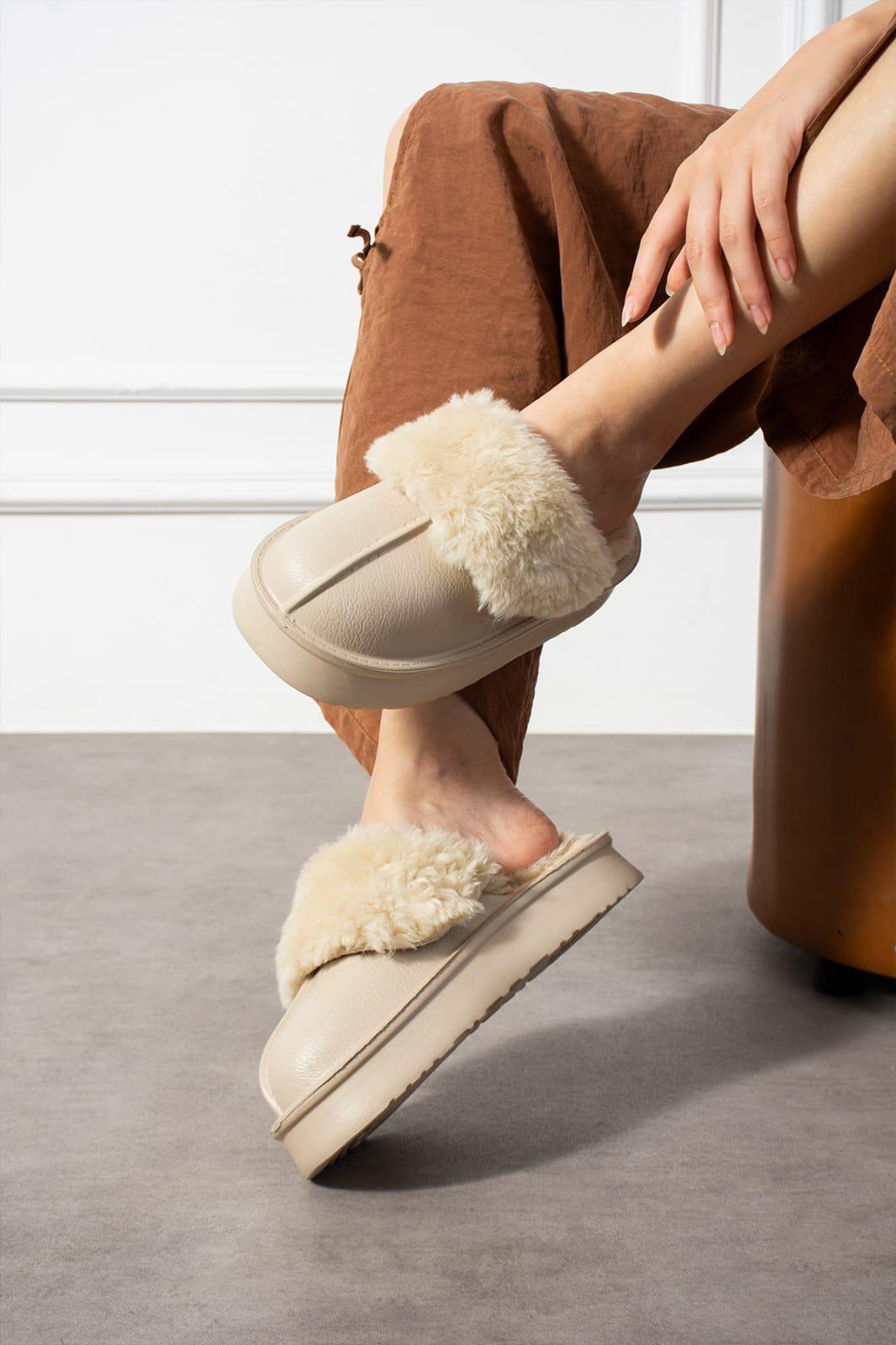 Valencia Kadın Yıkanabilir Peluş Terlik Bej