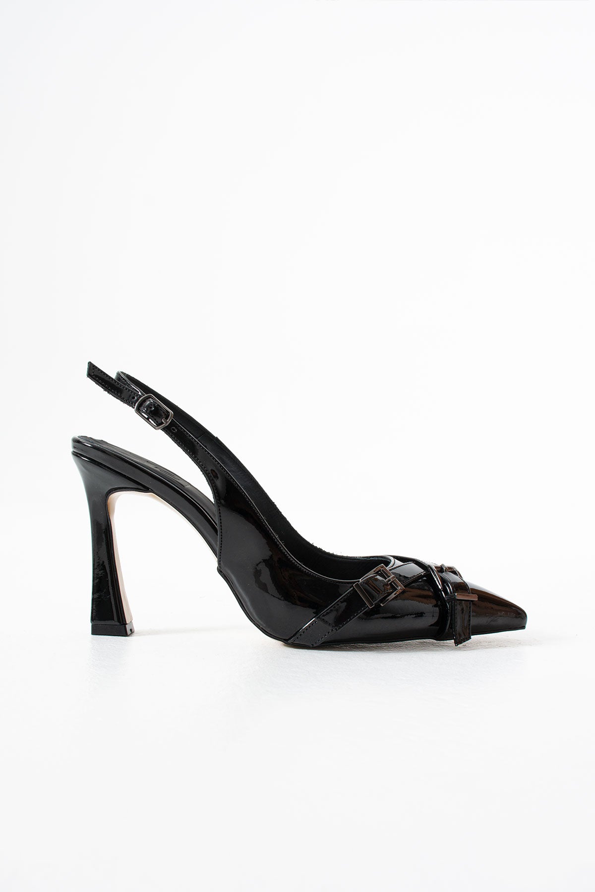 Vardy Kadın Toka Detaylı Topuklu Ayakkabı Siyah Rugan