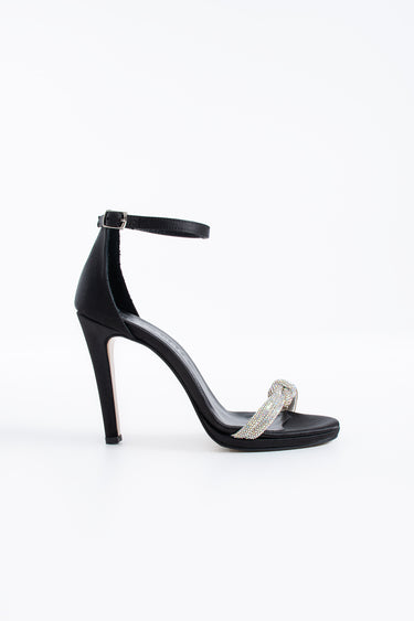 Venzio Kadın Taşlı Abiye Topuklu Ayakkabı Siyah Saten