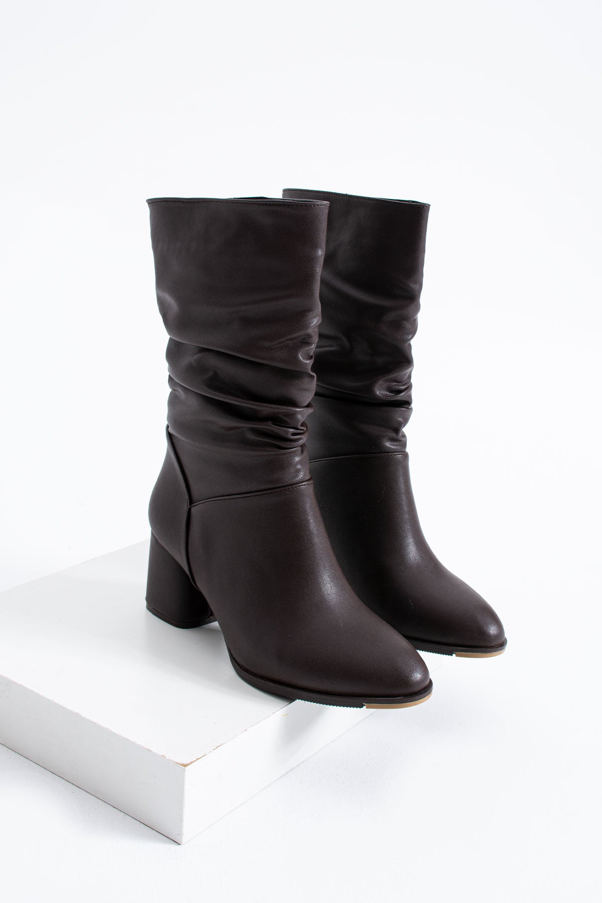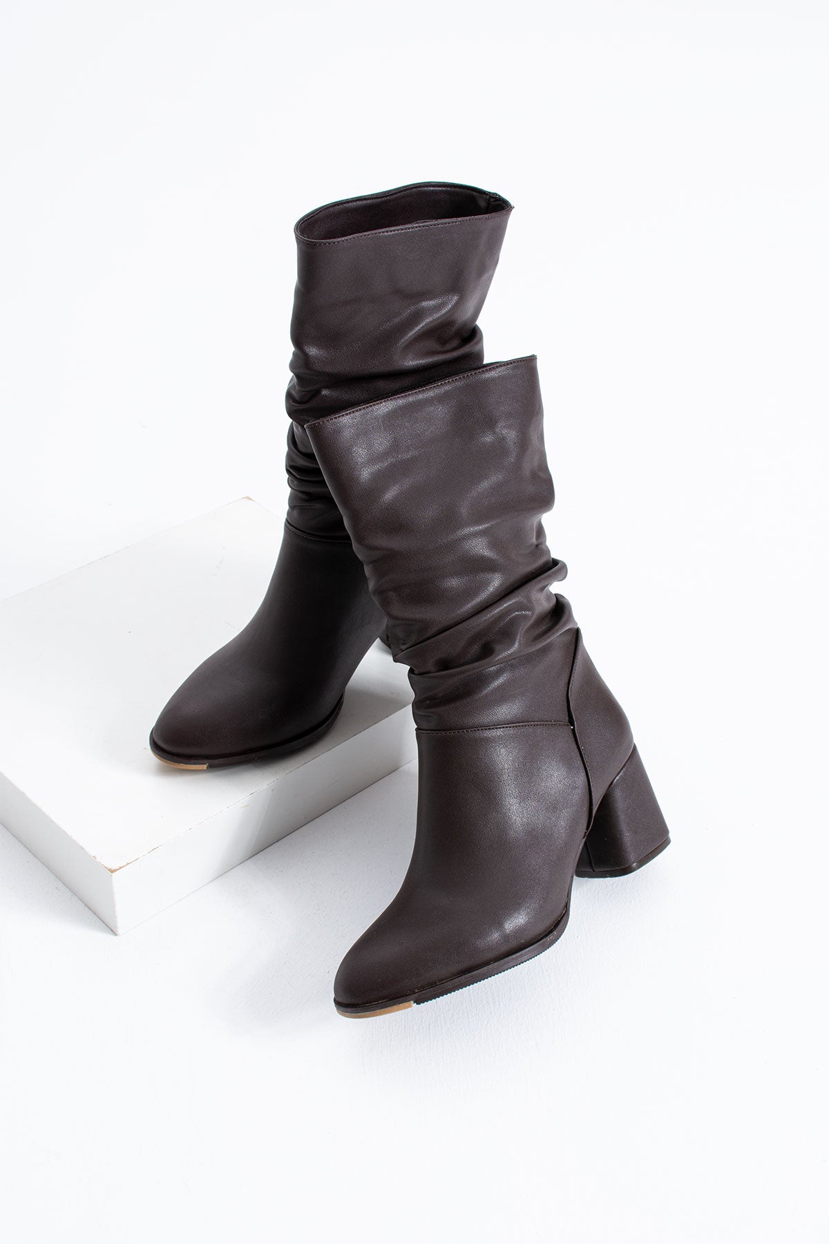 Victor Kadın Günlük Topuklu Çizme Kahve