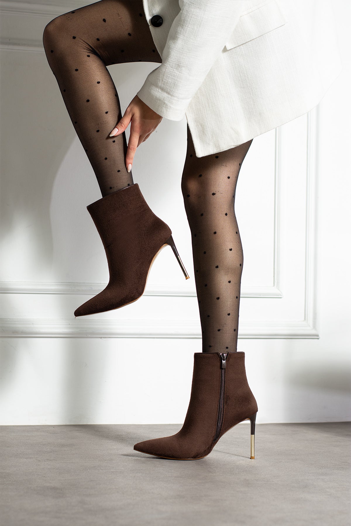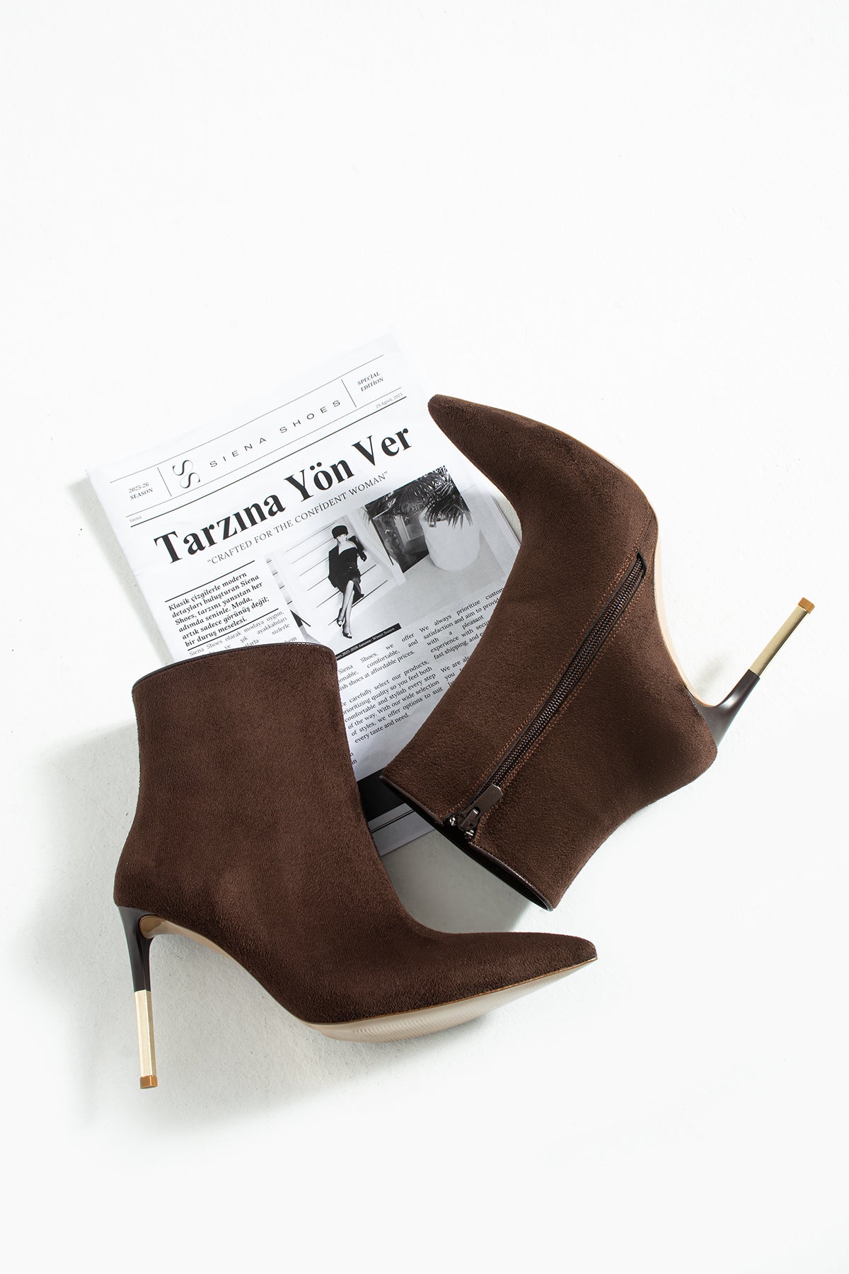 Zayko Kadın Fermuarlı Günlük Topuklu Bot Kahve Süet