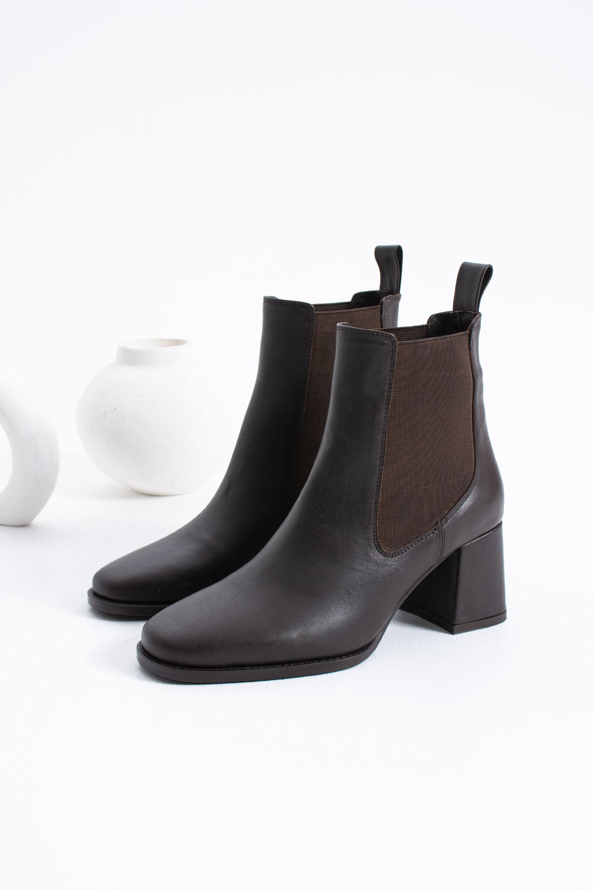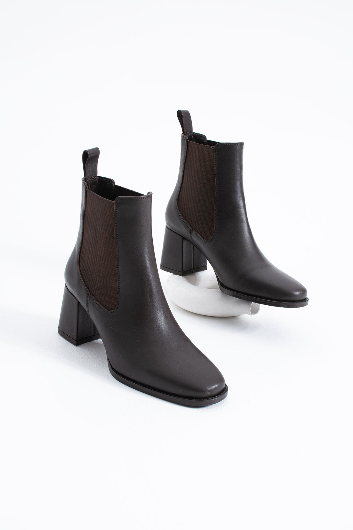 Zero Kadın Lastikli Hakiki Deri Topuklu Bot Kahve